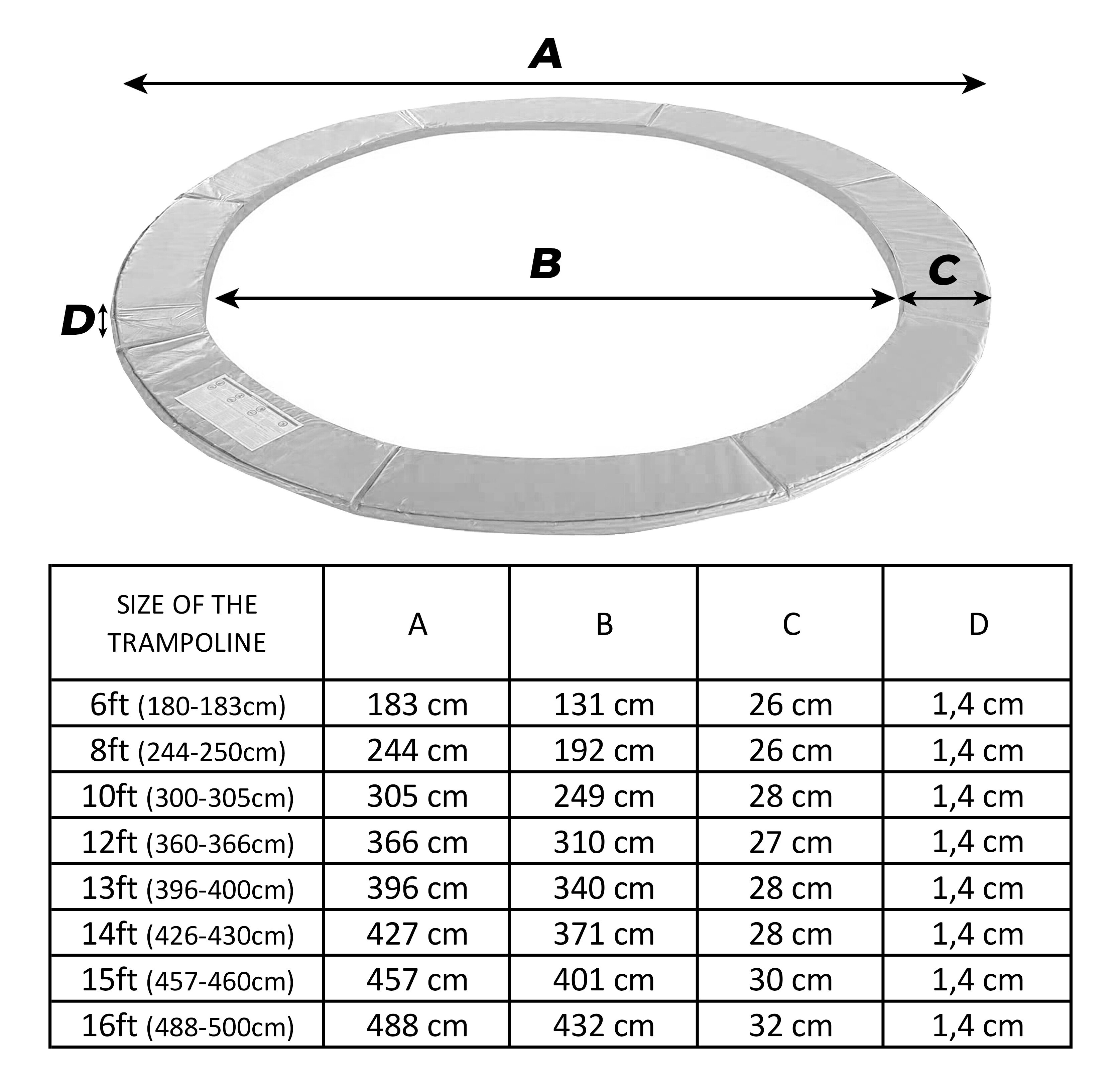 Ez az univerzális rugóvédő burkolat teljes értékű pótlása az eredeti alkatrészének a trambulinjáról, és különböző gyártók trambulinjain is használható, csak az a fontos, hogy betartsa a megadott átmérőt (méretet) és az eredeti burkolat formáját.