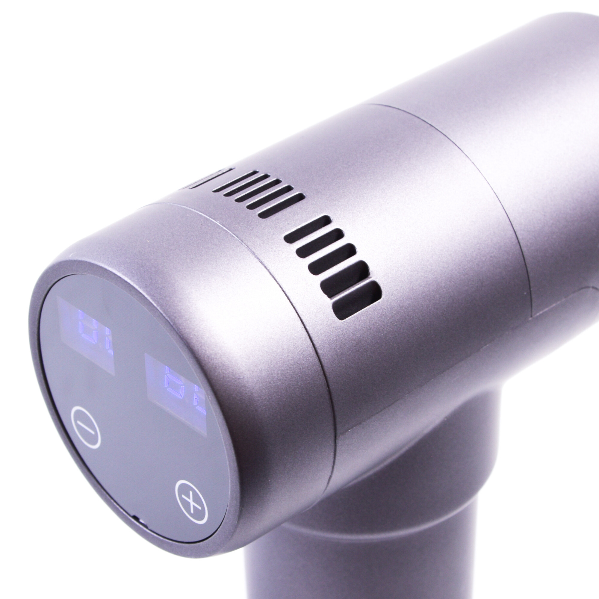 A masszázspisztoly egy beépített lítium-ion akkumulátorral rendelkezik, amelynek kapacitása 2500mAh, és egyetlen töltéssel akár 3 órán át is bírja, a használt sebességfokozattól függően.