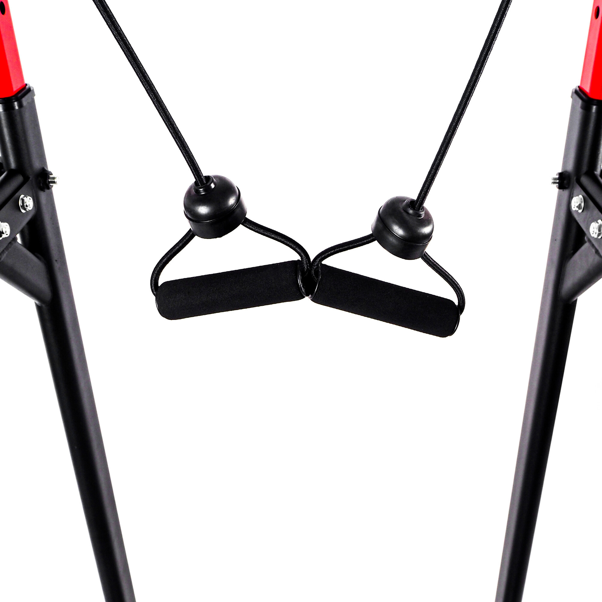 Csúszásmentes gumírozott felületű felső húzódzkodó rúddal rendelkezik, amelyen húzódzkodásokkal és egyéb gyakorlatokkal edzheti a hát, a has és a kar izmait.