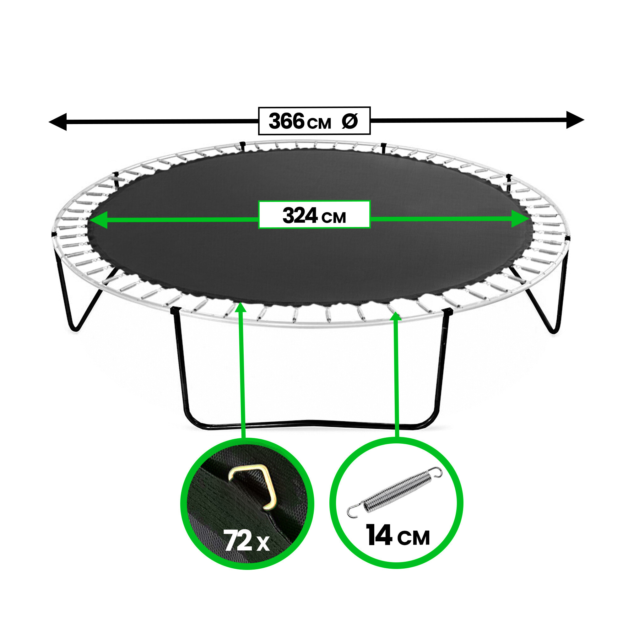 Pótugrófelület 366 cm-es trambulinokhoz, 72 szemmel.