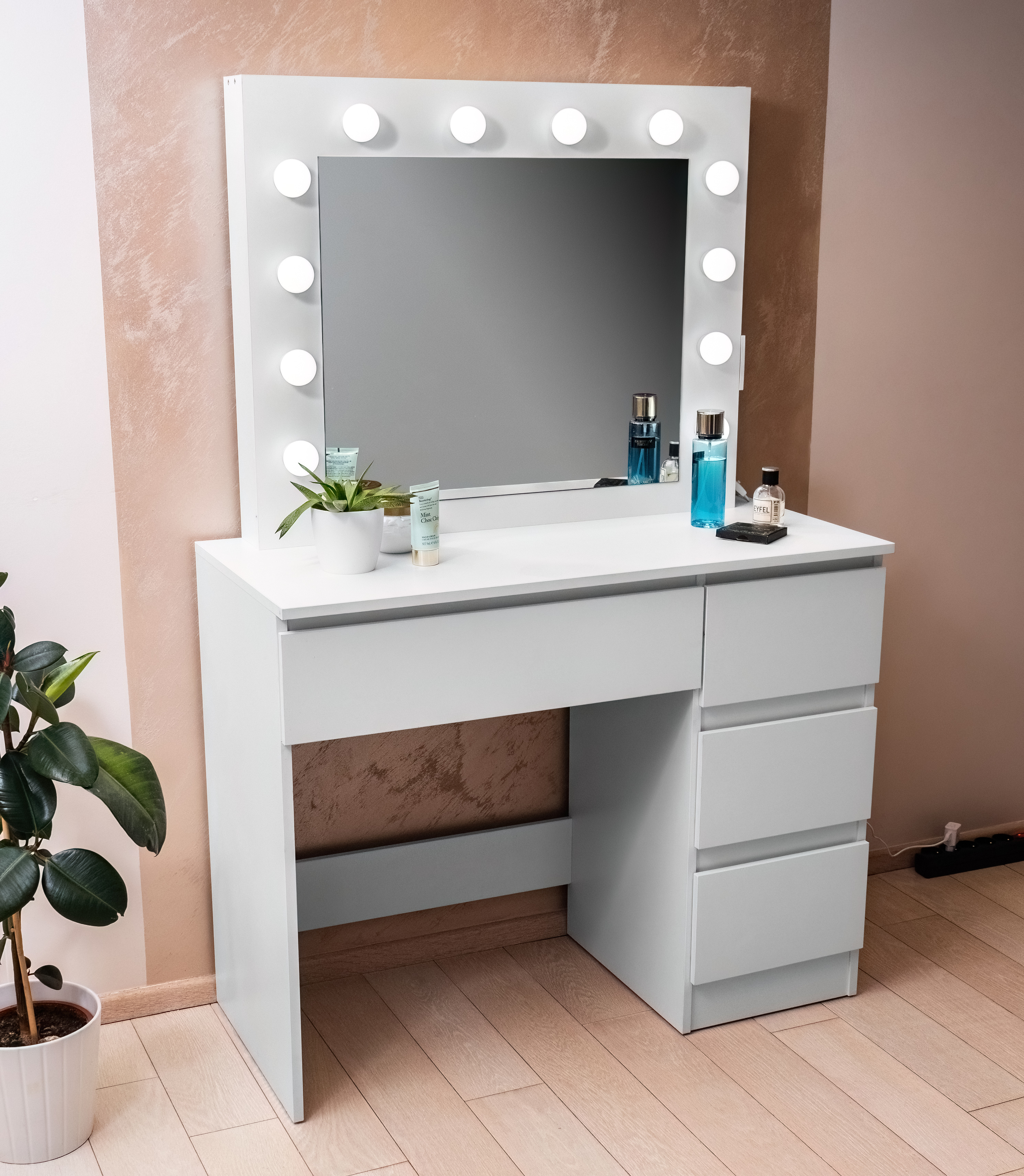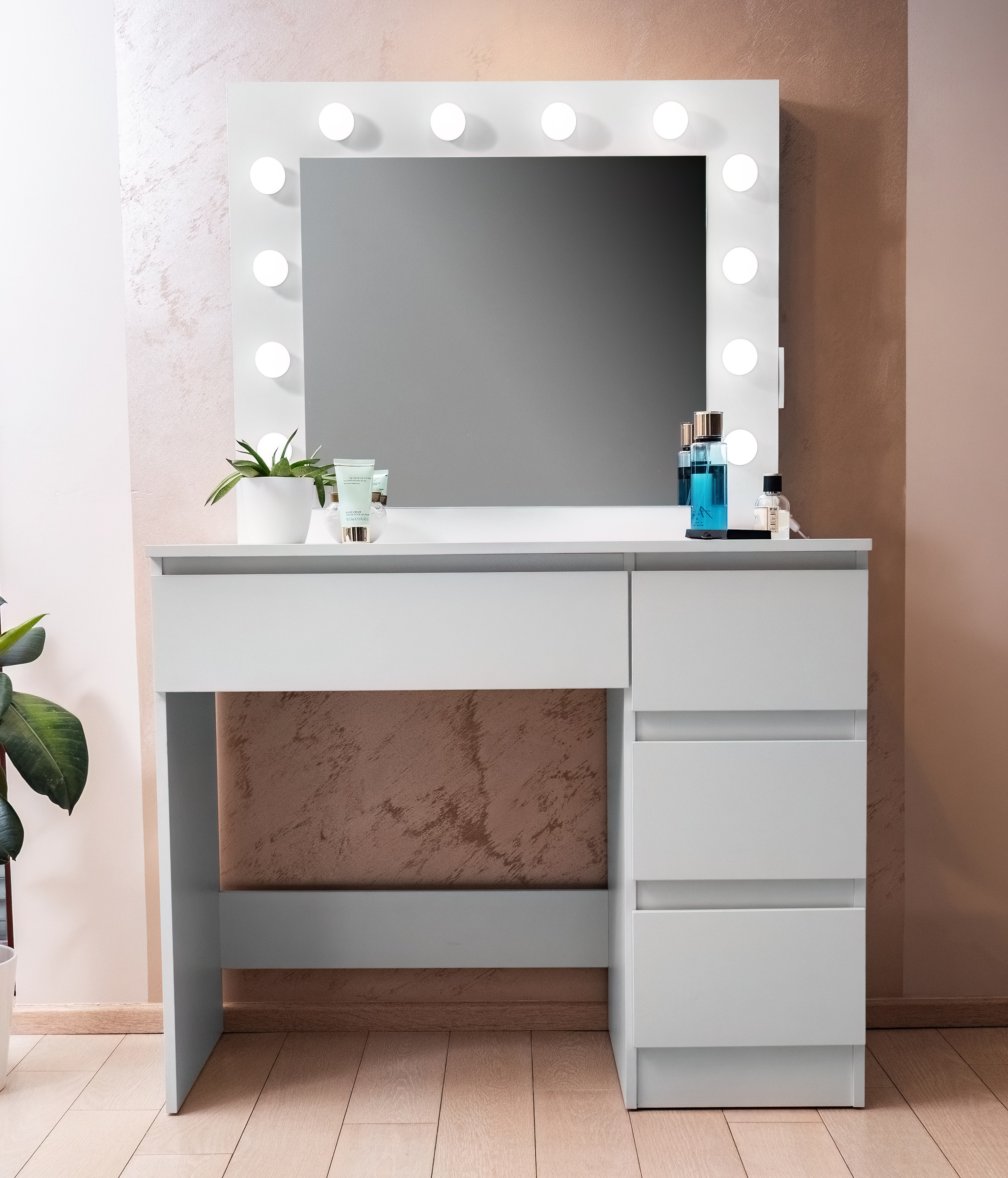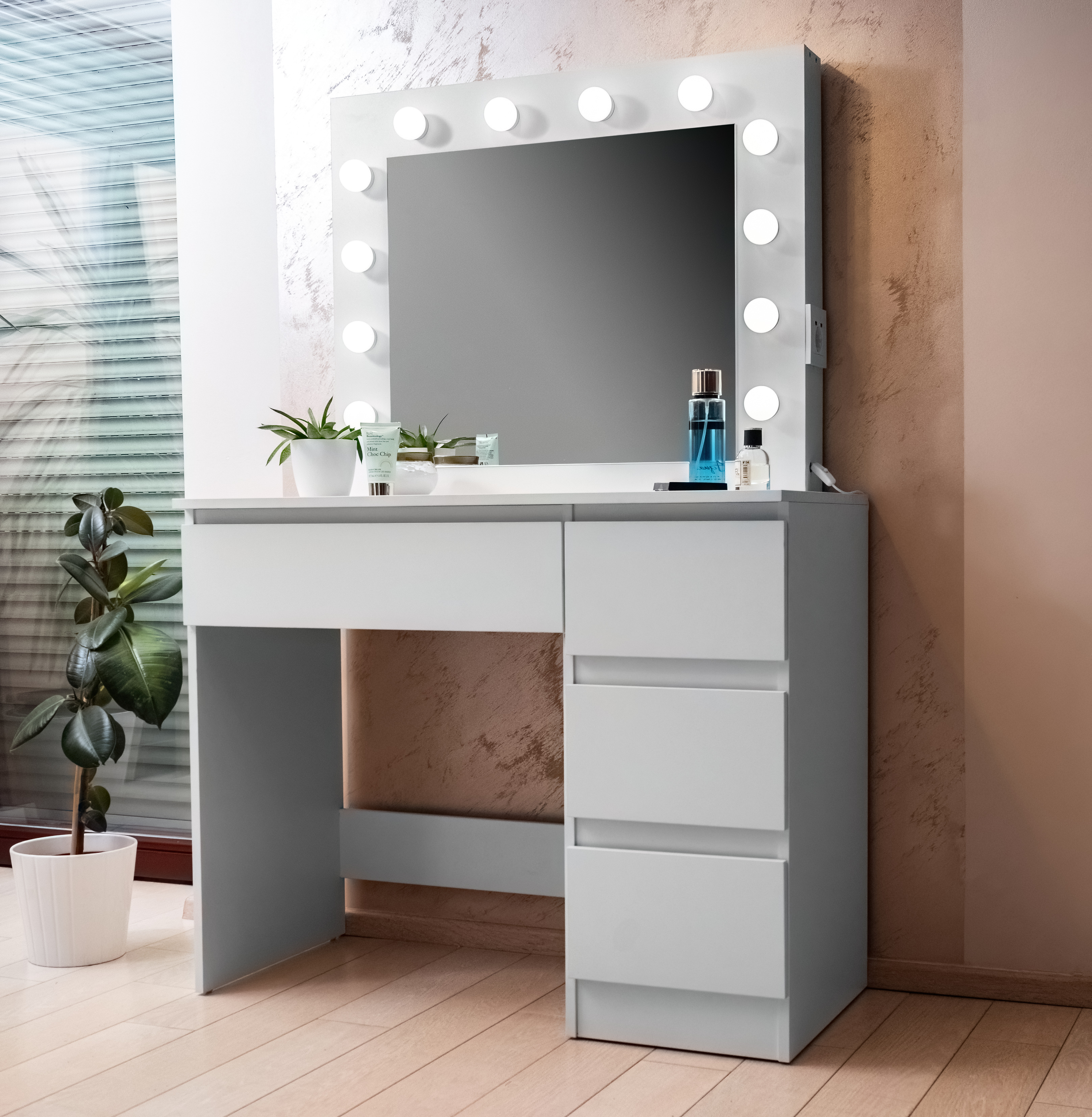 Aga Fésülködőasztal tükörrel, világítással és el.Matt fehér konnektor