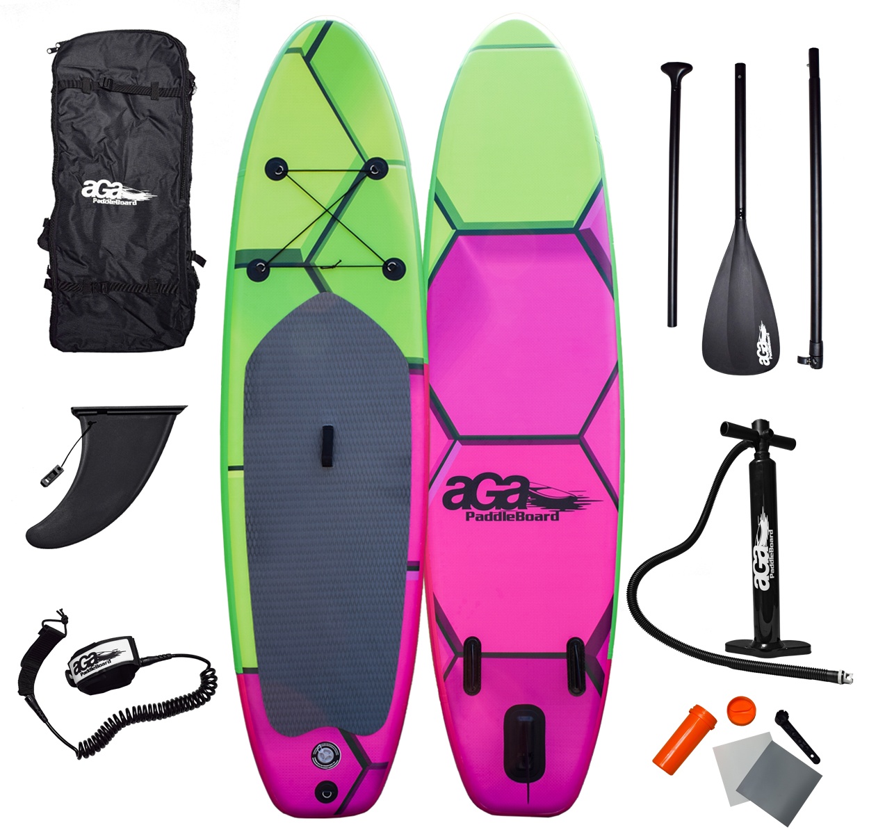A csomagban mindent megtalál, amire szüksége van ahhoz, hogy vízre szálljon: háromrészes alumínium lapát állítható hosszúsággal, pumpa nyomásmérővel, biztonsági póráz, fin,javítókészlet.