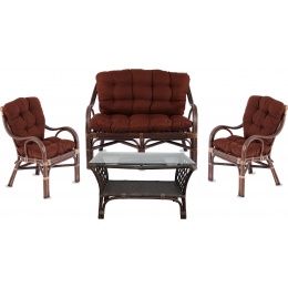 - A készlet a következőket tartalmazza: rattan pad, 2 fotel, asztal üveggel és teljes párnasorozat