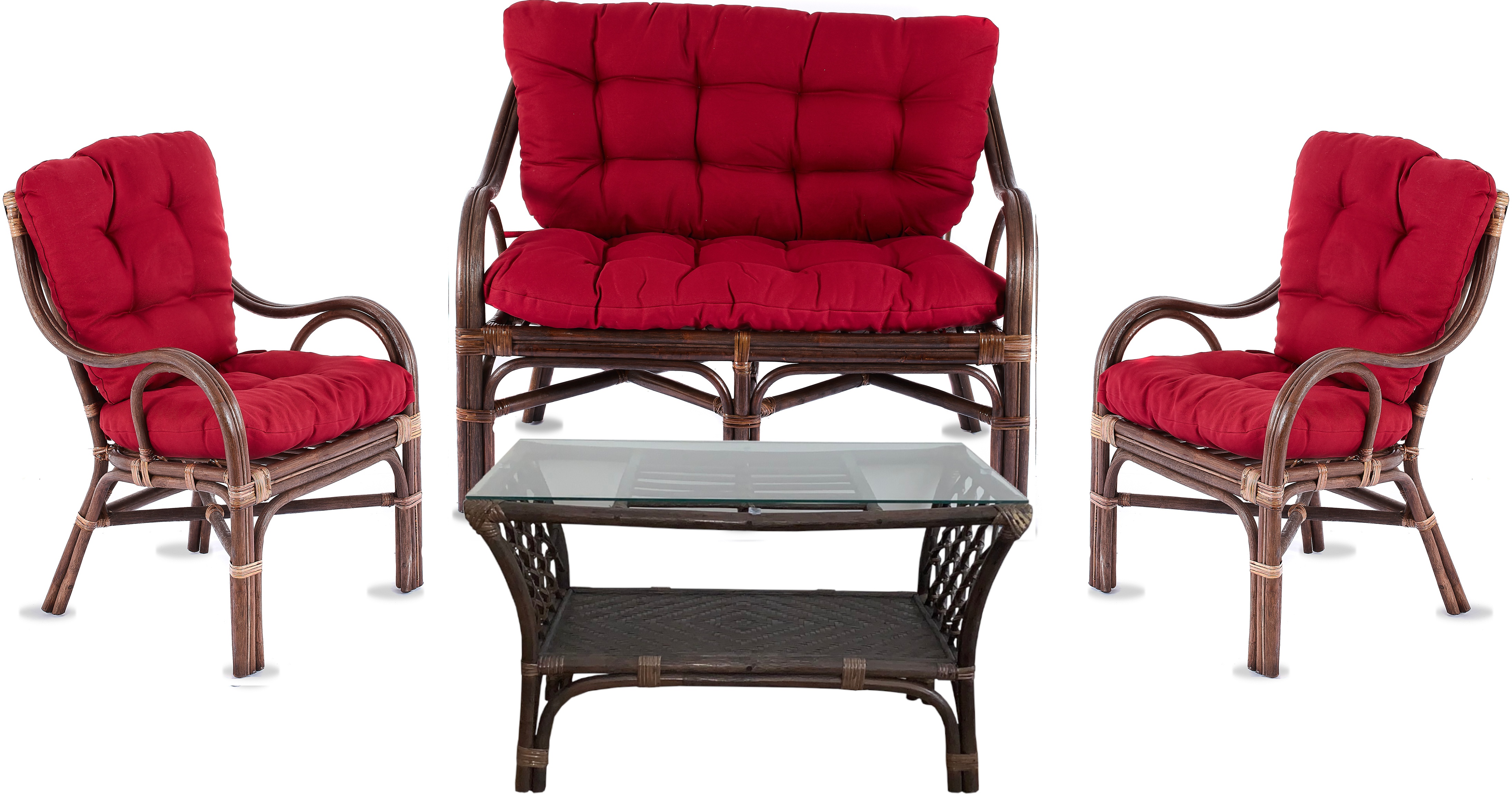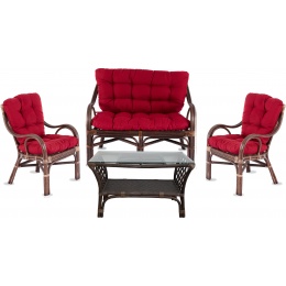 - A készlet a következőket tartalmazza: rattan pad, 2 fotel, asztal üveggel és teljes párnasorozat