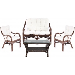A kollekció 2 rattan fotelből, egy rattan padból és egy üveglapos rattan asztalból áll.Az asztal alján van egy terület kisebb tárgyak tárolására.