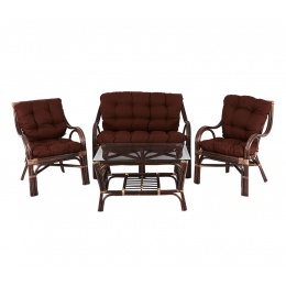 A kollekció 2 rattan fotelből, egy rattan padból és egy üveglapos rattan asztalból áll.Az asztal alján van egy terület kisebb tárgyak tárolására.