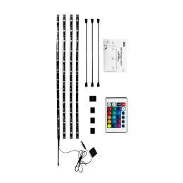 a készlet tartalmaz egy IR távirányítót is, amellyel könnyen beállíthatók a LED színei és hatásai.