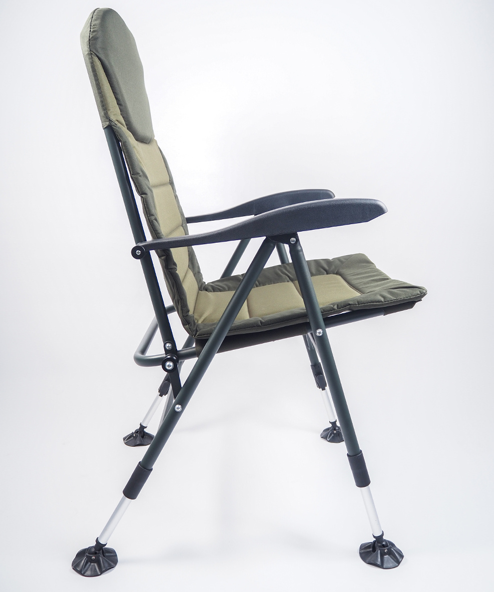 Minden horgász örülni fog az állítható széklábaknak, amelyek speciális párnákkal rendelkeznek, hogy megakadályozzák a puha talajba süllyedést.