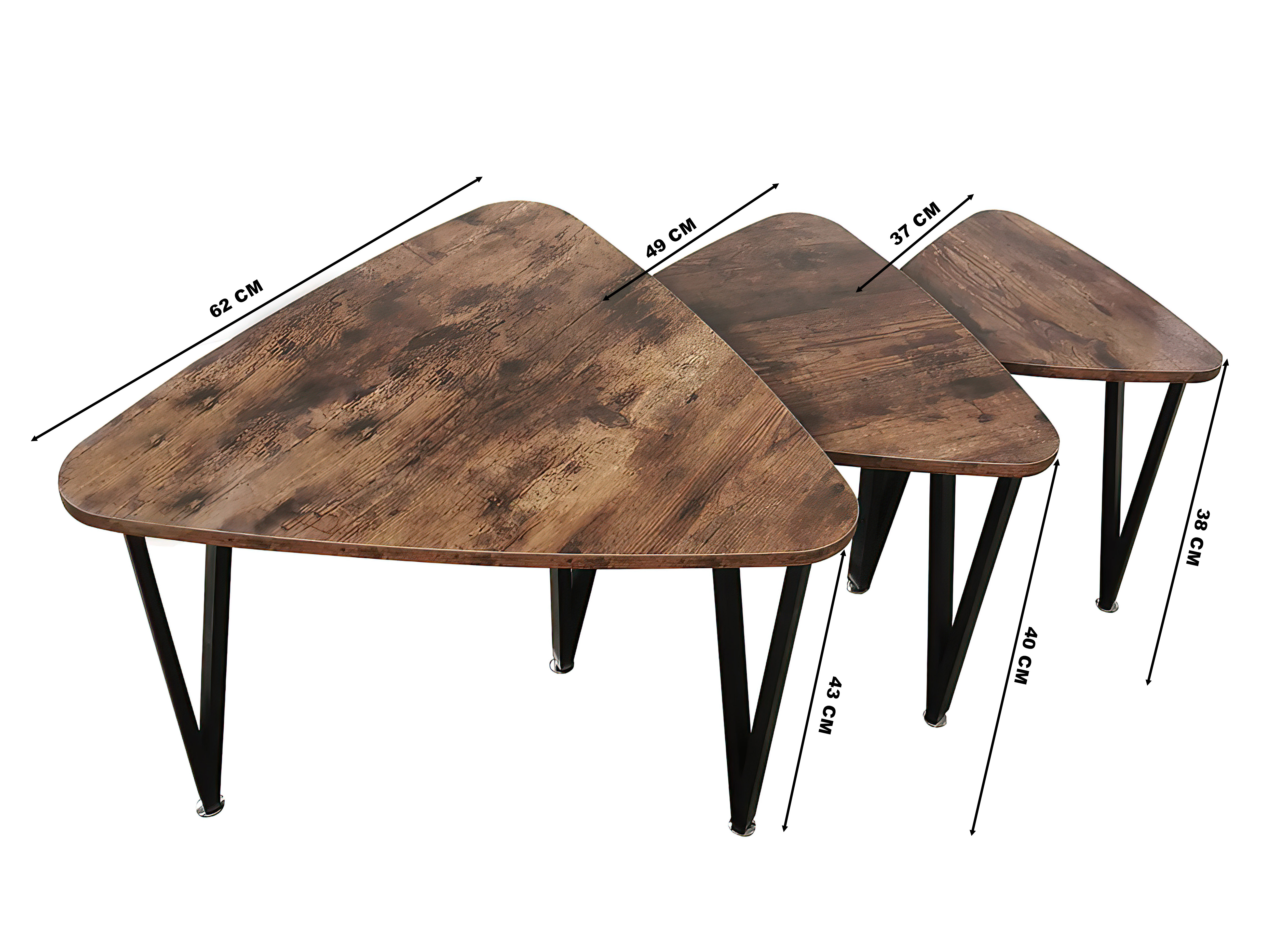 A dohányzóasztal-készlet 3 dohányzóasztalból áll, amelyek csak méretükben különböznek egymástól. Remekül mutatnak a nappaliban, az előszobában vagy az irodában.