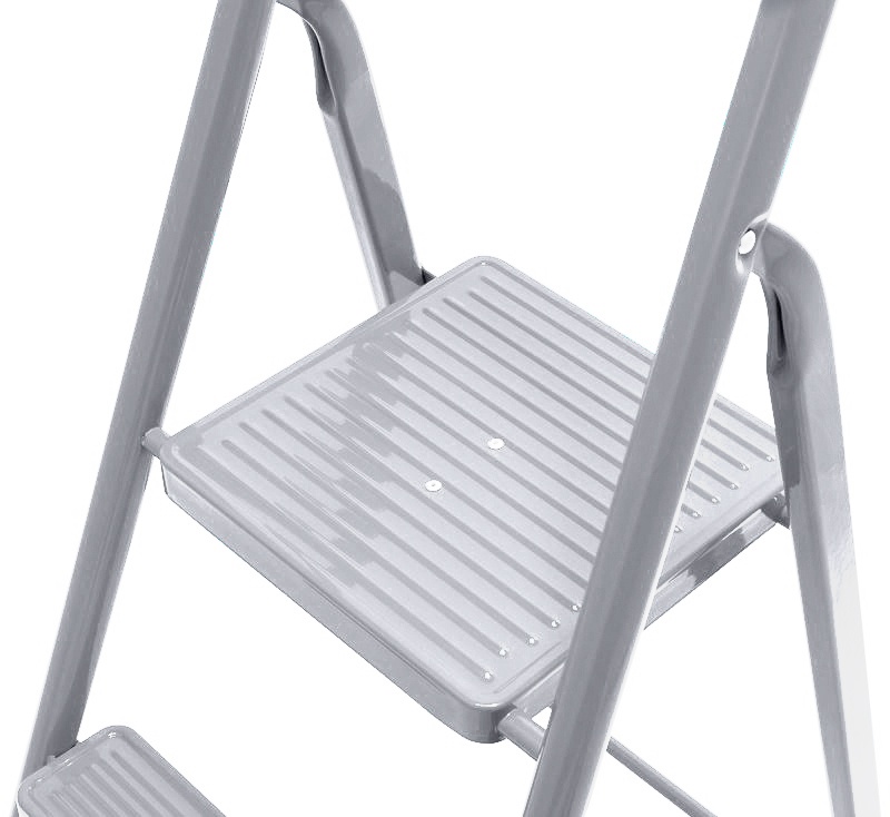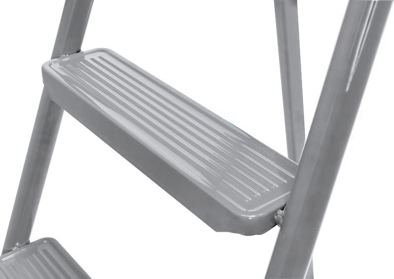 E lépcsők fő előnye a nagy stabilitást biztosító masszív acélszerkezet, a csúszásmentes platform (25×25 cm) és a széles talp. Speciális védőelemek a lépcsőfokok lábain a csúszás és a padló karcolása ellen.