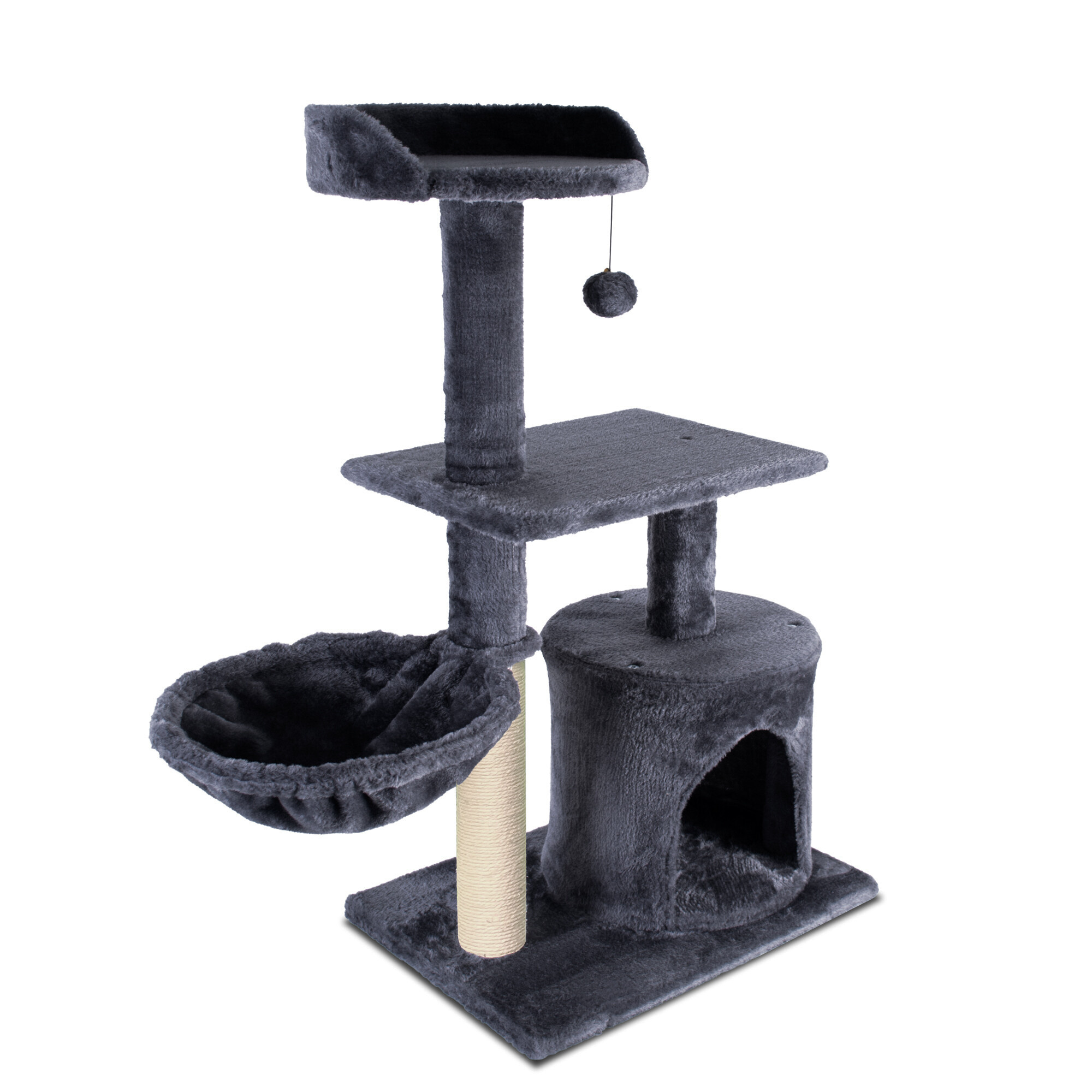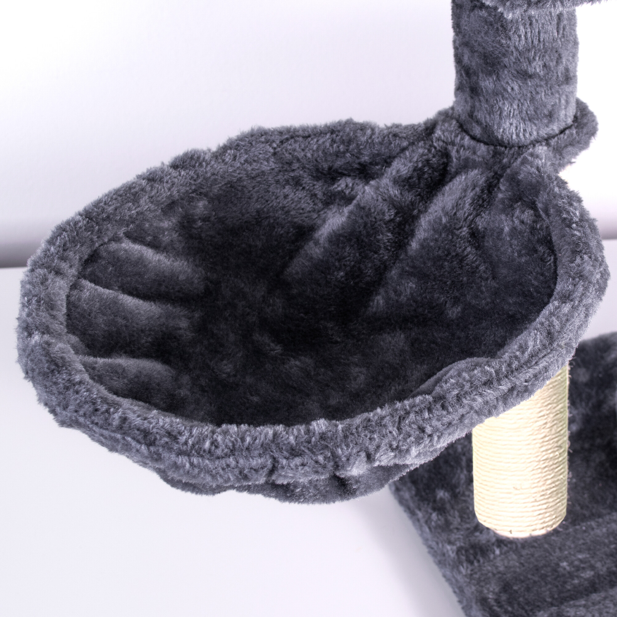 A minőségi és erős szizállal körbetekert kaparófa bármikor lehetőséget nyújt neki a karmok élesítésére, anélkül, hogy attól kellene tartania, hogy pontosan ott teszi meg, ahol nem szeretné. Ugyanakkor a puha plüssnek köszönhetően ez lesz a kedvenc helye a pihenésre és a játékra.