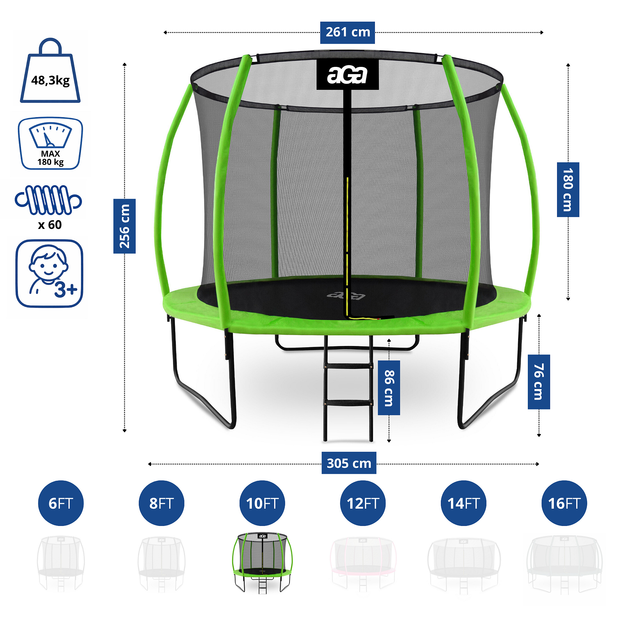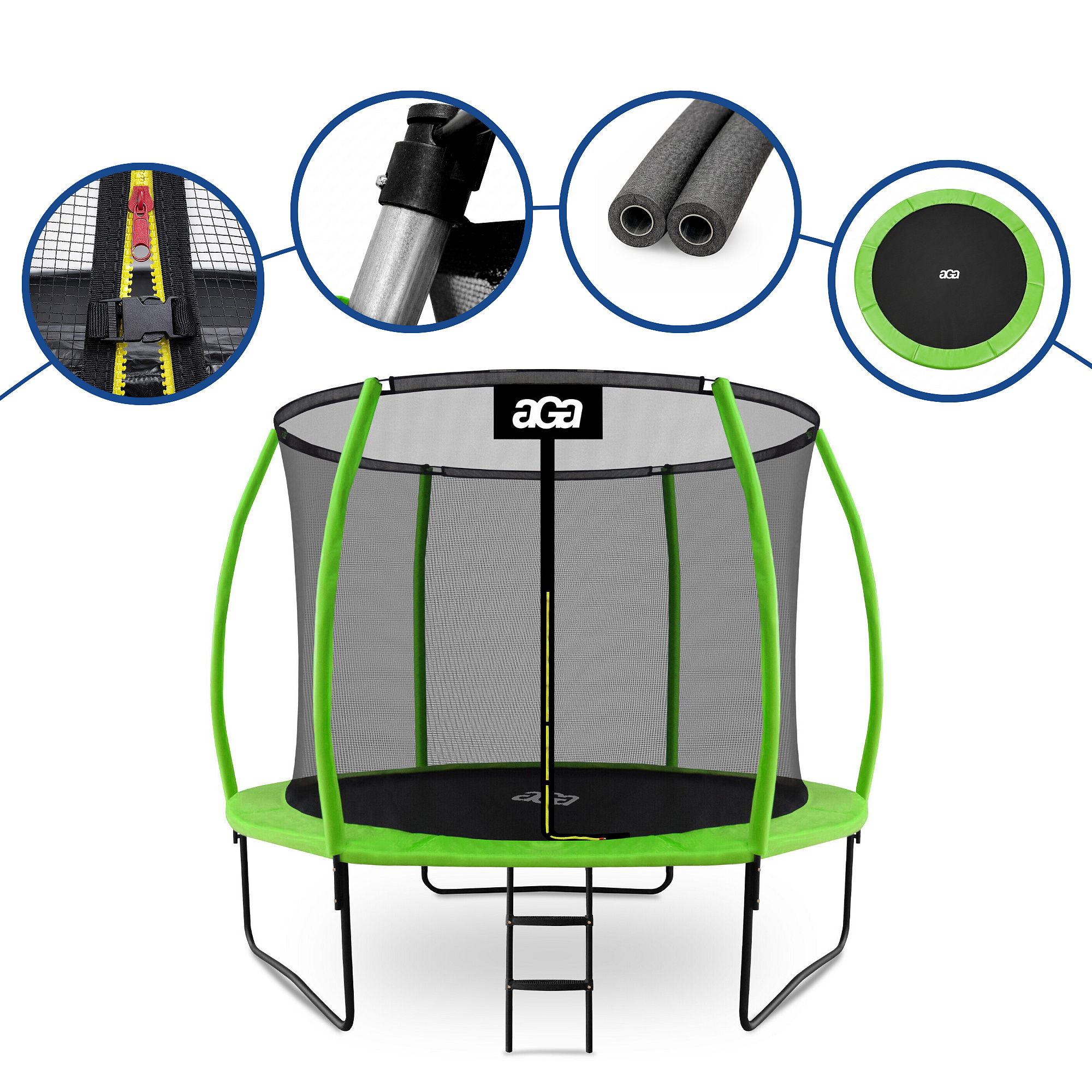 Aga trambulin belső védőhálóval kifejezetten a gyermekek és felnőttek biztonságos szórakozására lett tervezve és gyártva.