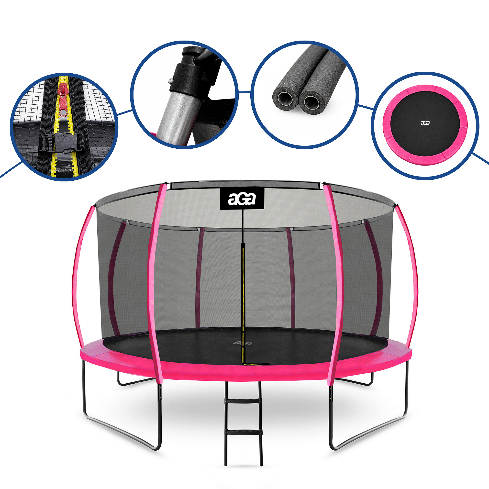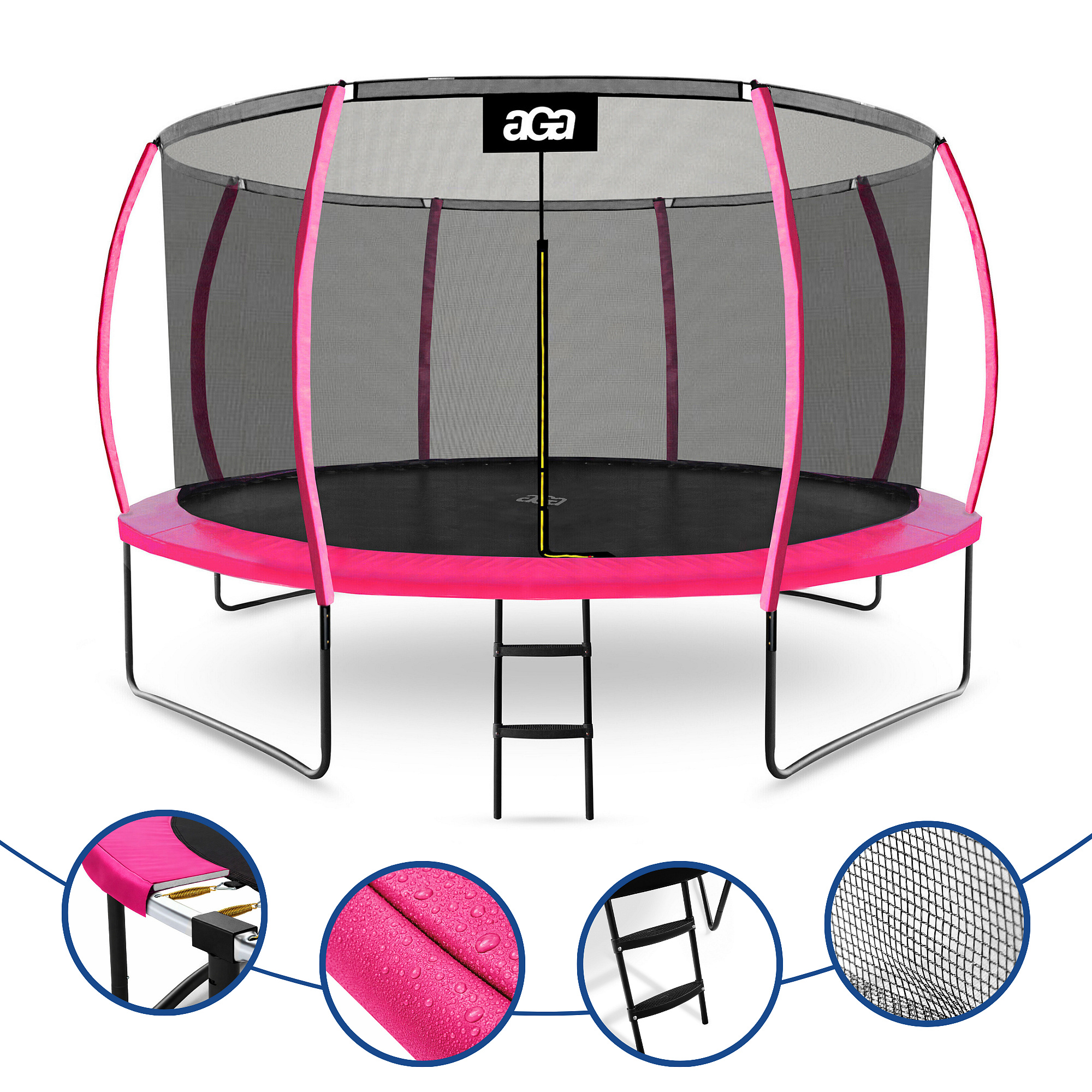 Az Aga trambulin belső védőhálóval kifejezetten a gyermekek és felnőttek biztonságos szórakozására lett tervezve és gyártva.