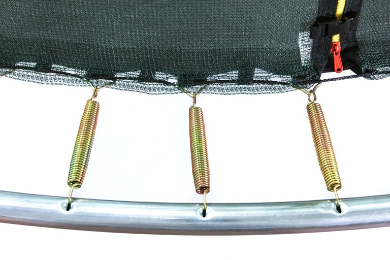 A trambulin maximális biztonságát a PVC-ből készült, párnázott peremöv (rugófedél) biztosítja, amely a rugókat a trambulin teljes kerületén körbefogja.
