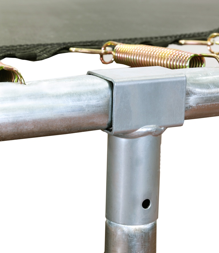 A Hi-Ten megerősített trambulinszerkezet kiváló minőségű horganyzott acélból készült, kiváló korrózióállósággal.