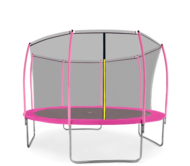 Az Aga SPORT FIT 366 cm-es rózsaszín trambulin specifikációi belső védőhálóval.