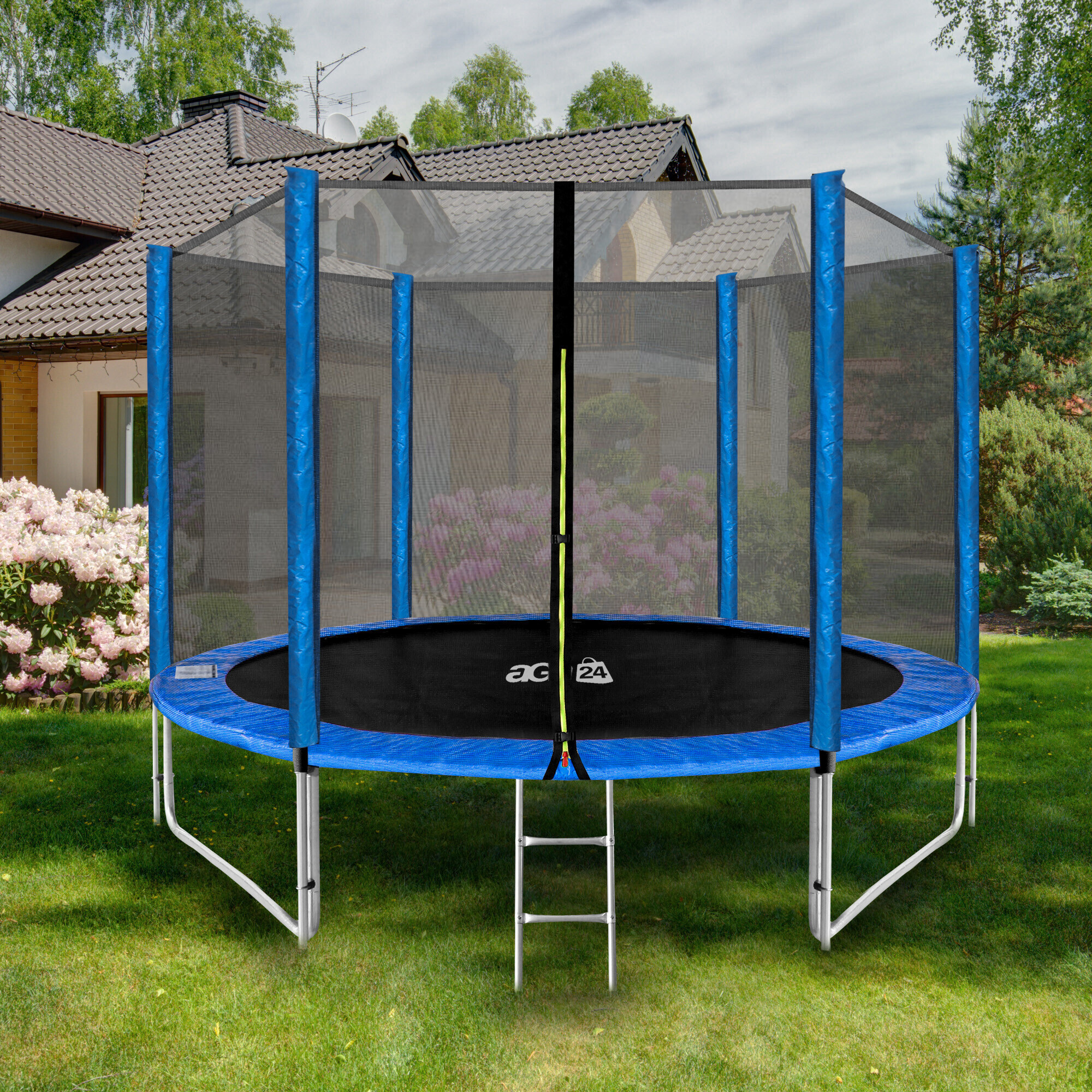 Aga SPORT PRO 305 cm Kék trambulin védőhálóval és létrával.