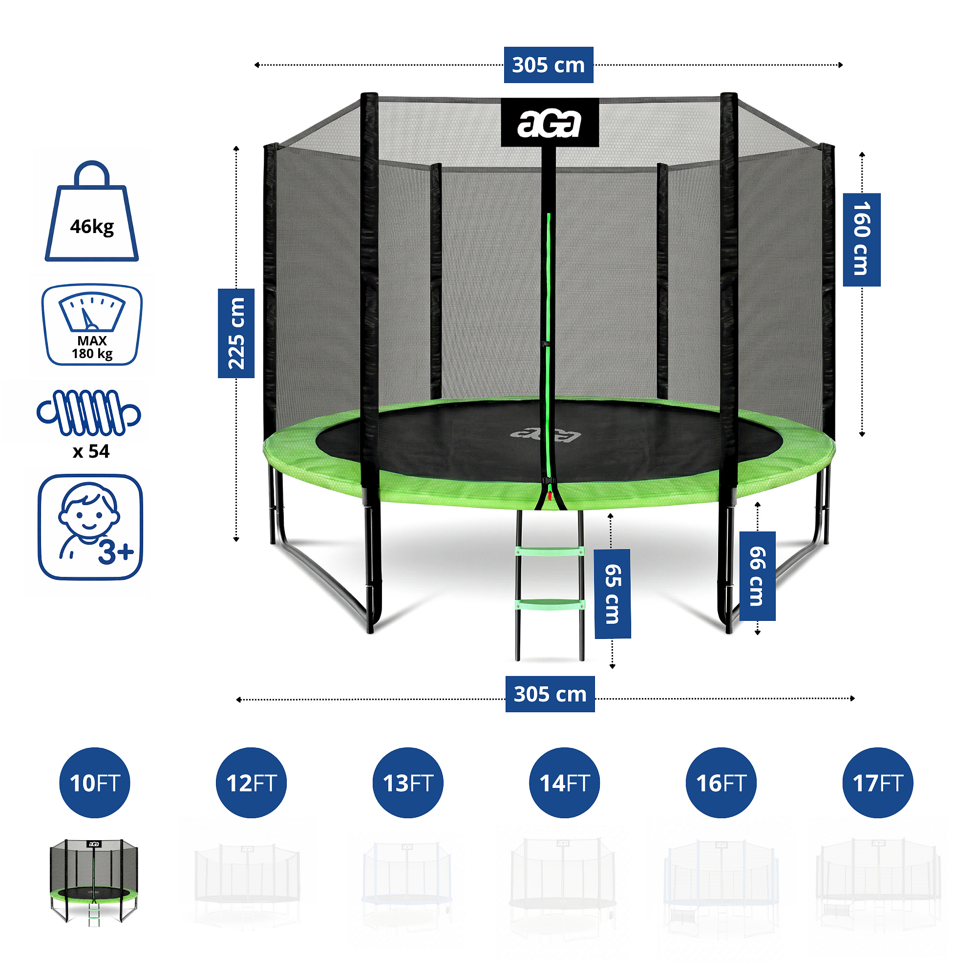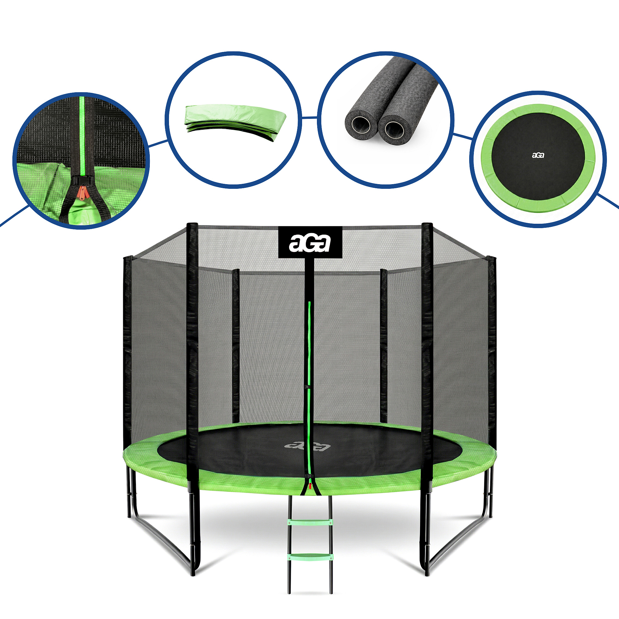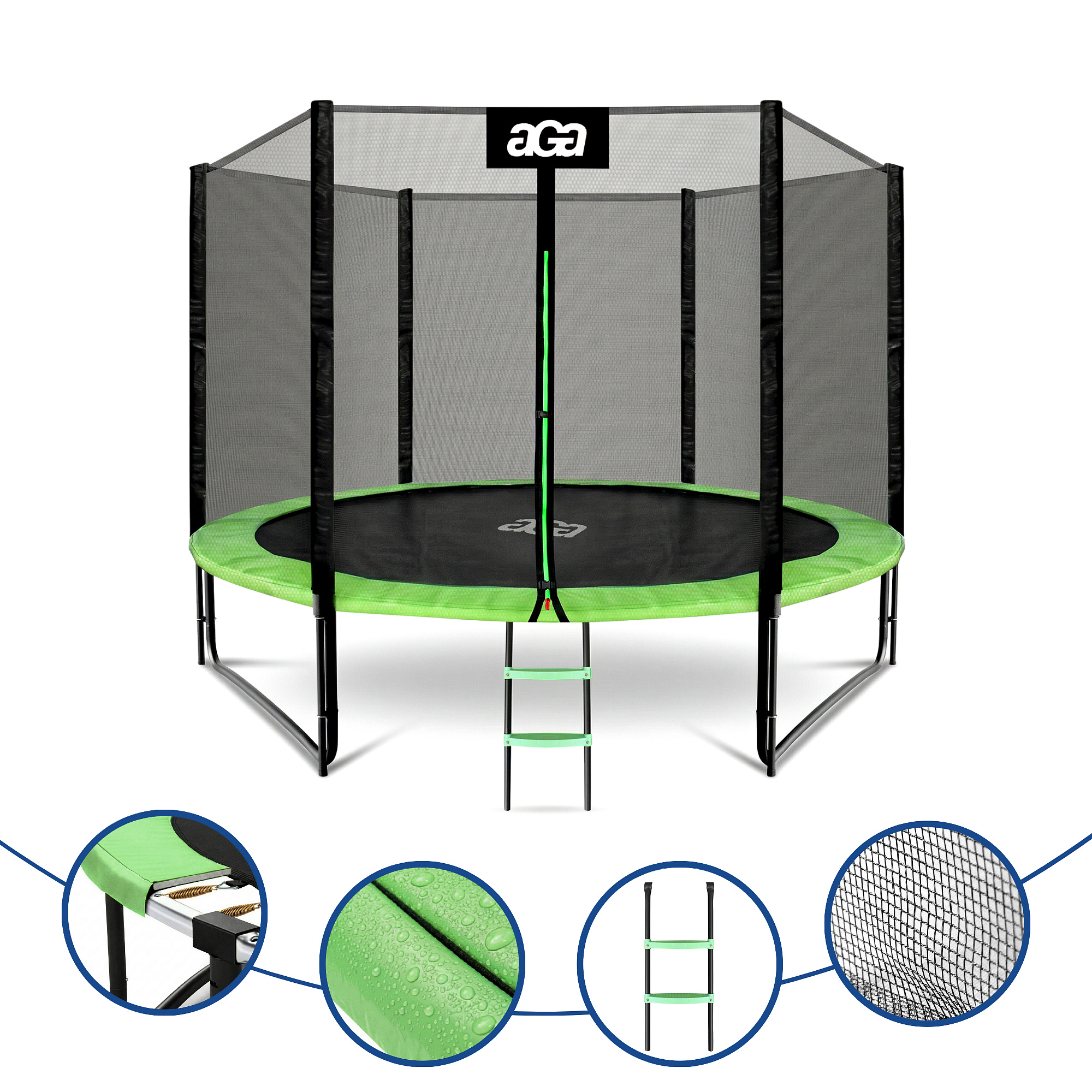 Aga SPORT PRO 305 cm Világoszöld trambulin védőhálóval és létrával - specifikációk.
