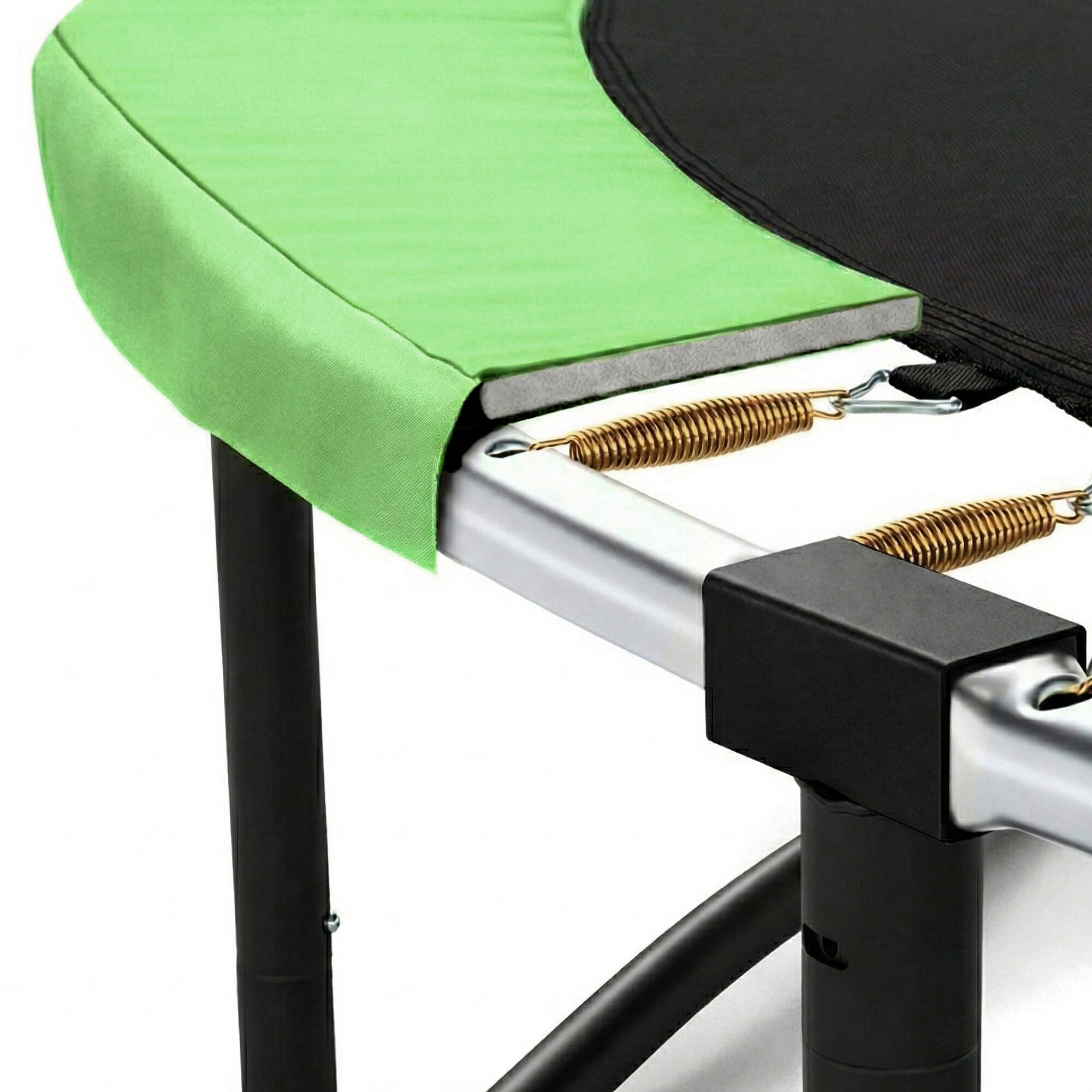 A maximális biztonságot a párnázott kerületi öv (rugóvédő) biztosítja, amely a trambulin teljes kerületén lefedi a rugókat.