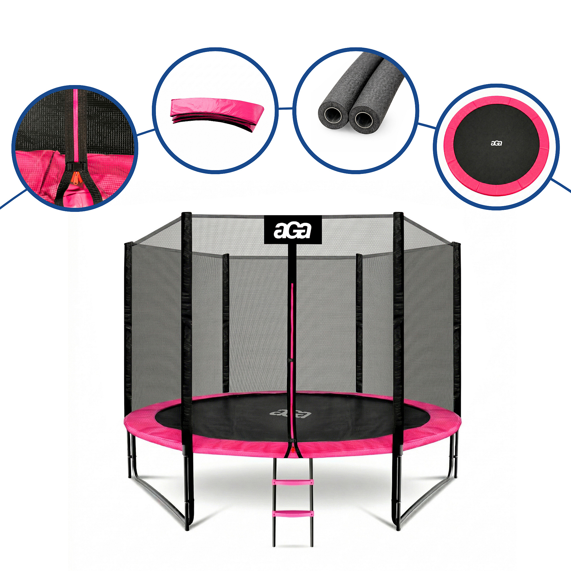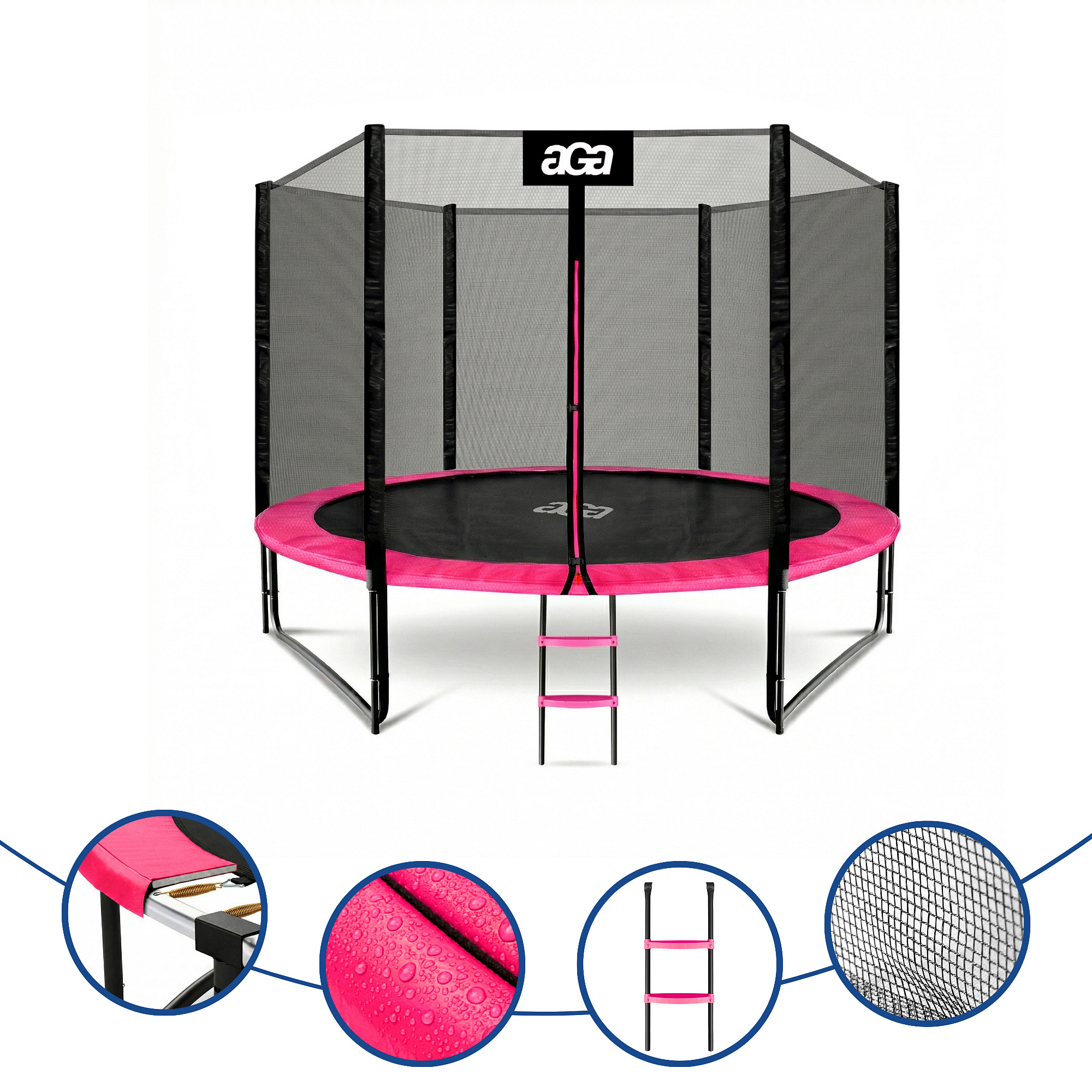 Aga SPORT PRO 305 cm Rózsaszín trambulin védőhálóval és létrával - specifikációk.