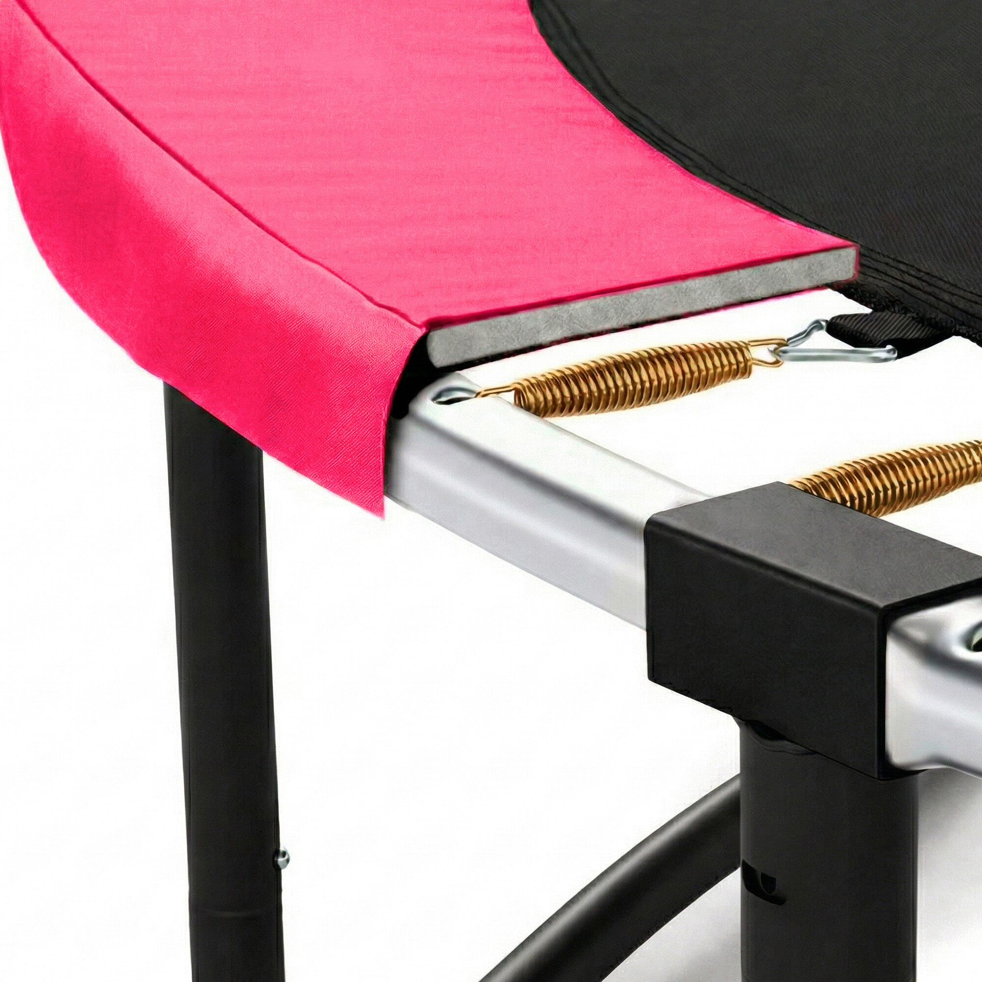 A maximális biztonságot a párnázott kerületi öv (rugóvédő) biztosítja, amely a trambulin teljes kerületén lefedi a rugókat.