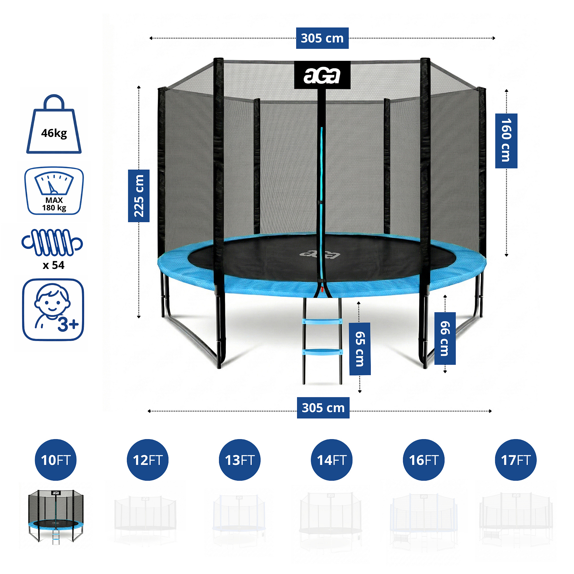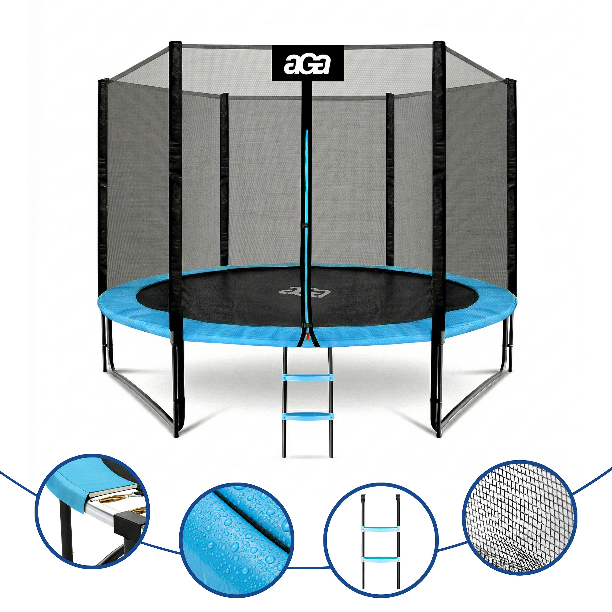 Aga SPORT PRO 305 cm Világoskék trambulin védőhálóval és létrával - specifikációk.