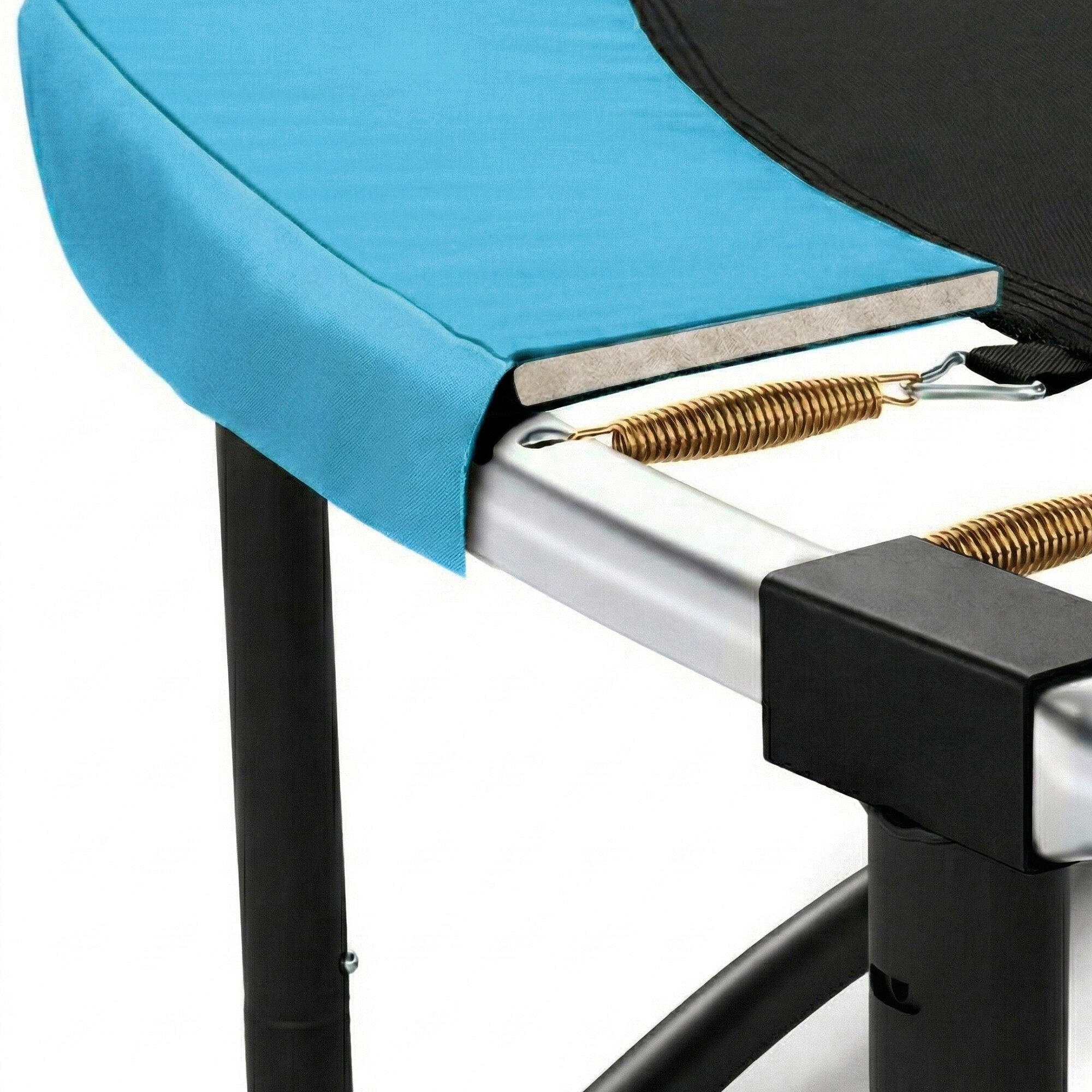 A maximális biztonságot a párnázott kerületi öv (rugóvédő) biztosítja, amely a trambulin teljes kerületén lefedi a rugókat.