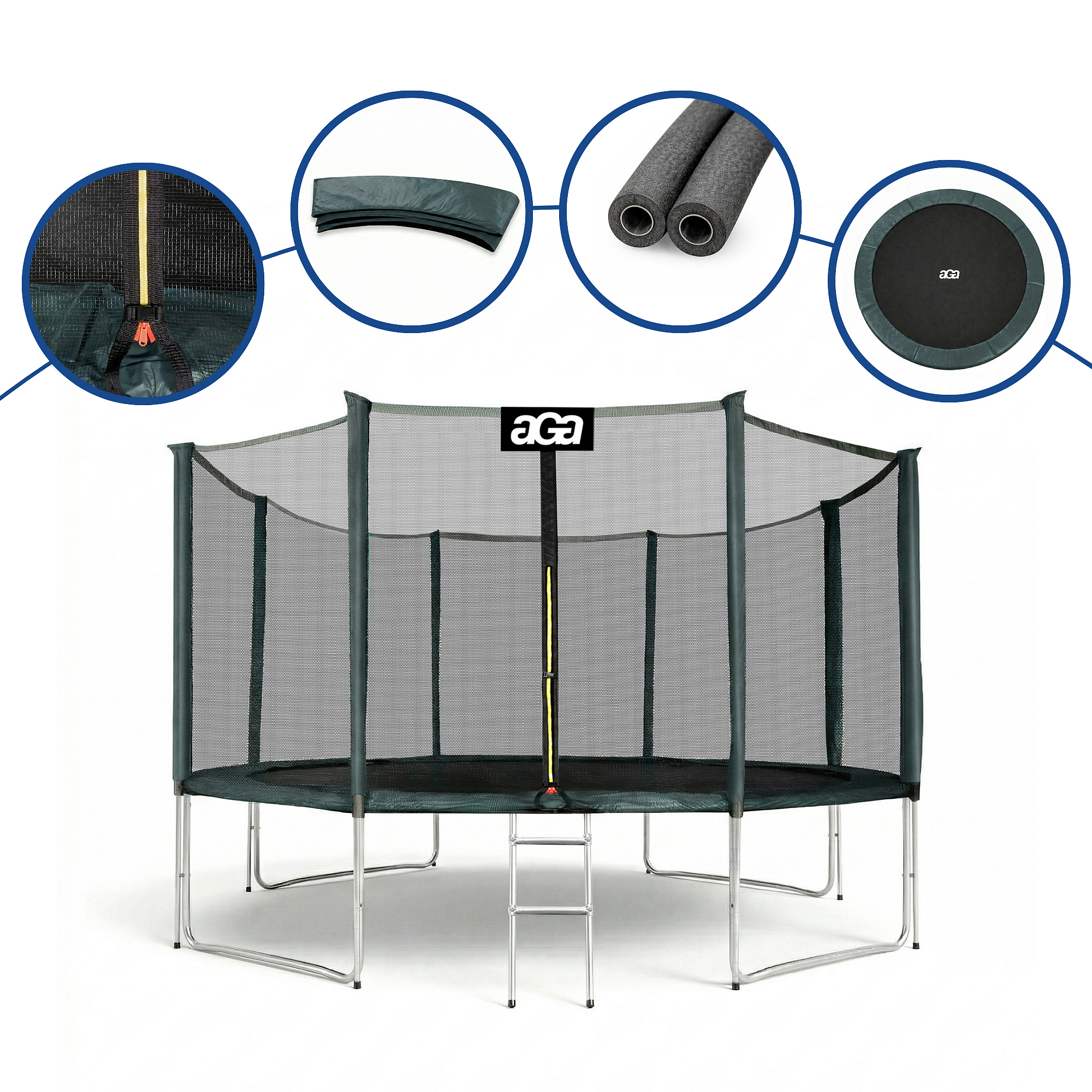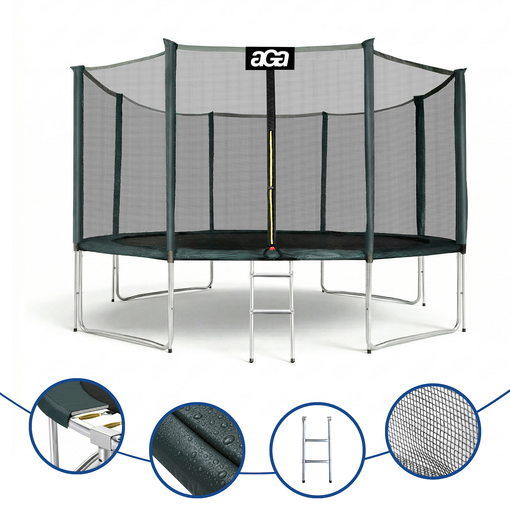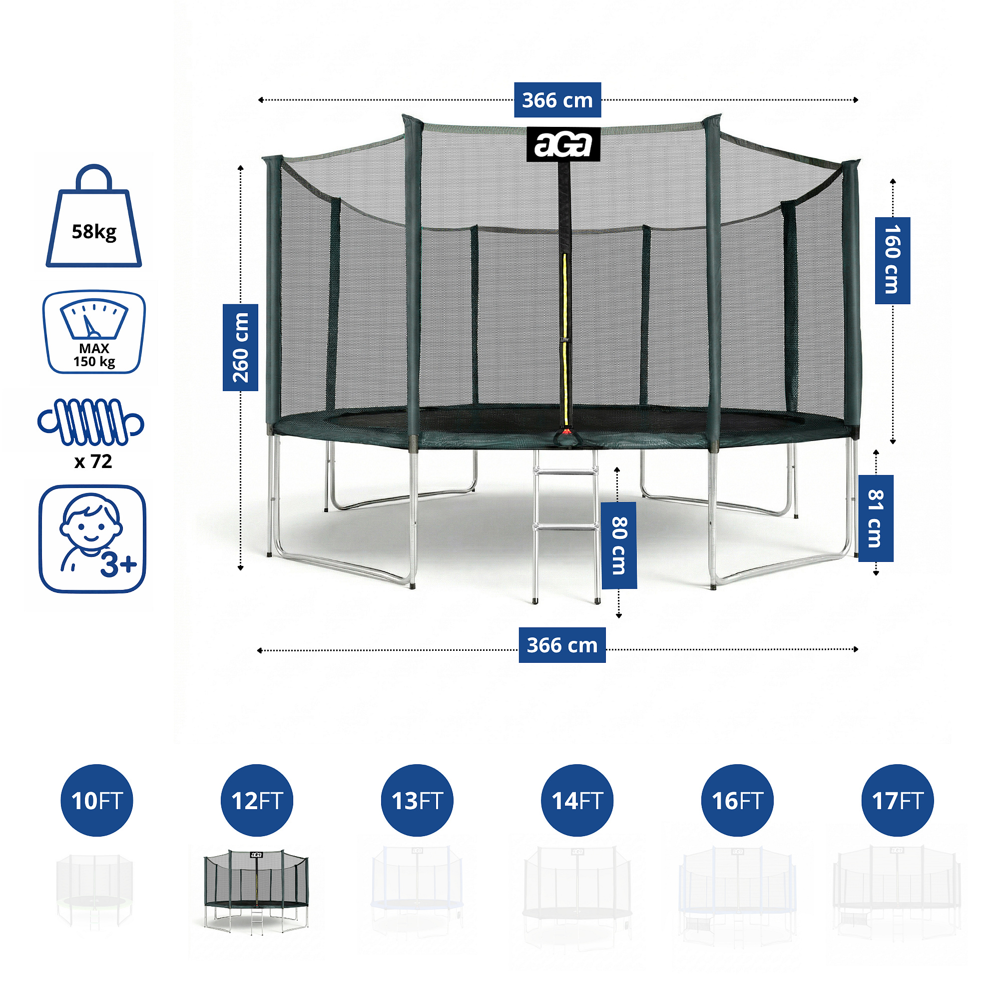Aga SPORT PRO 366 cm sötétzöld trambulin védőhálóval - specifikációk.