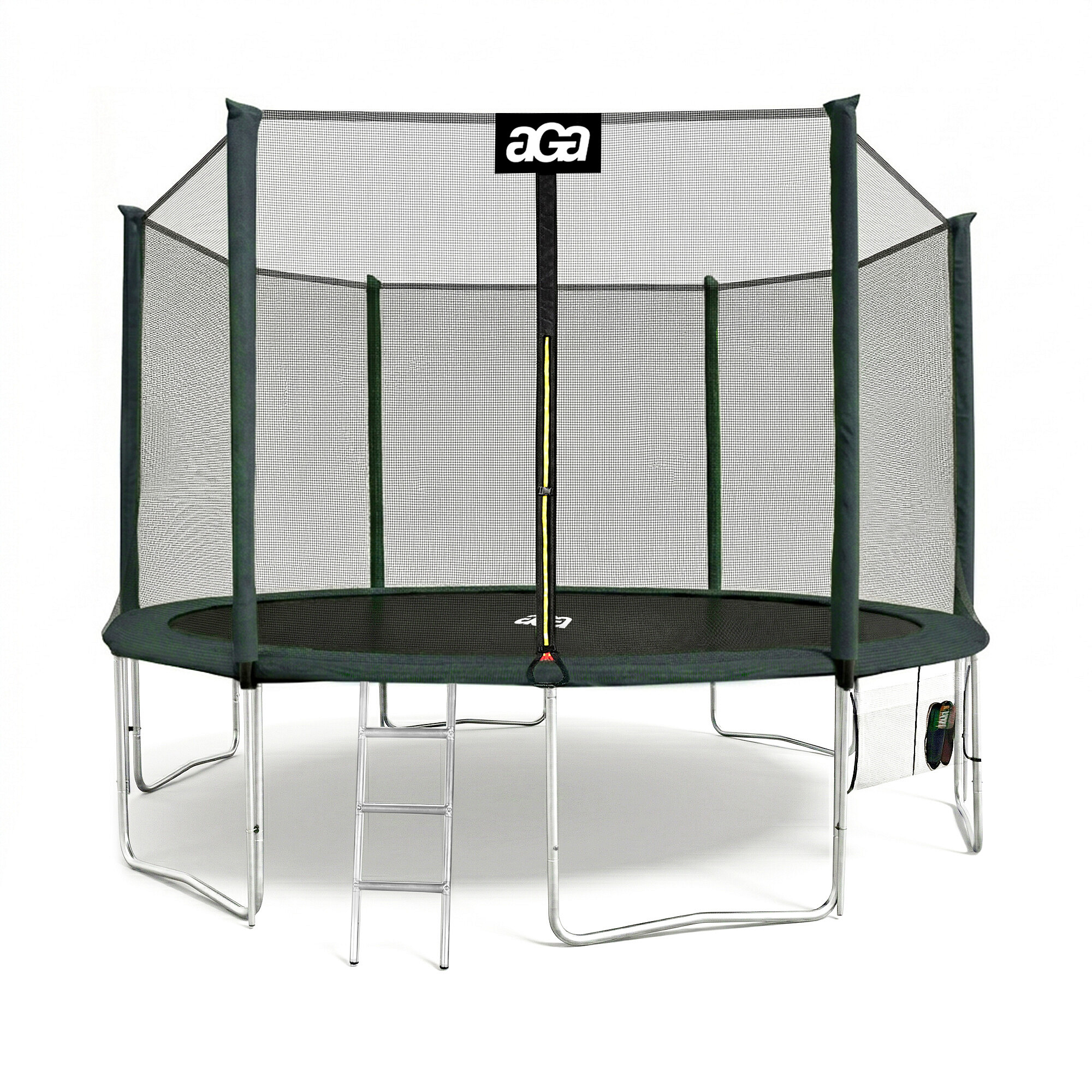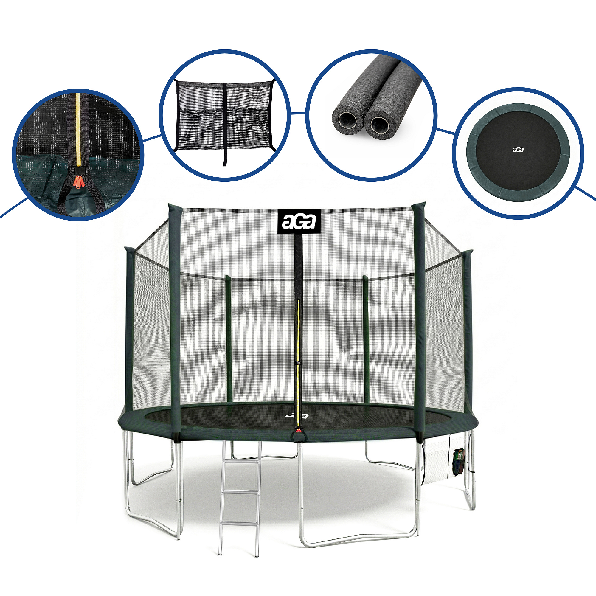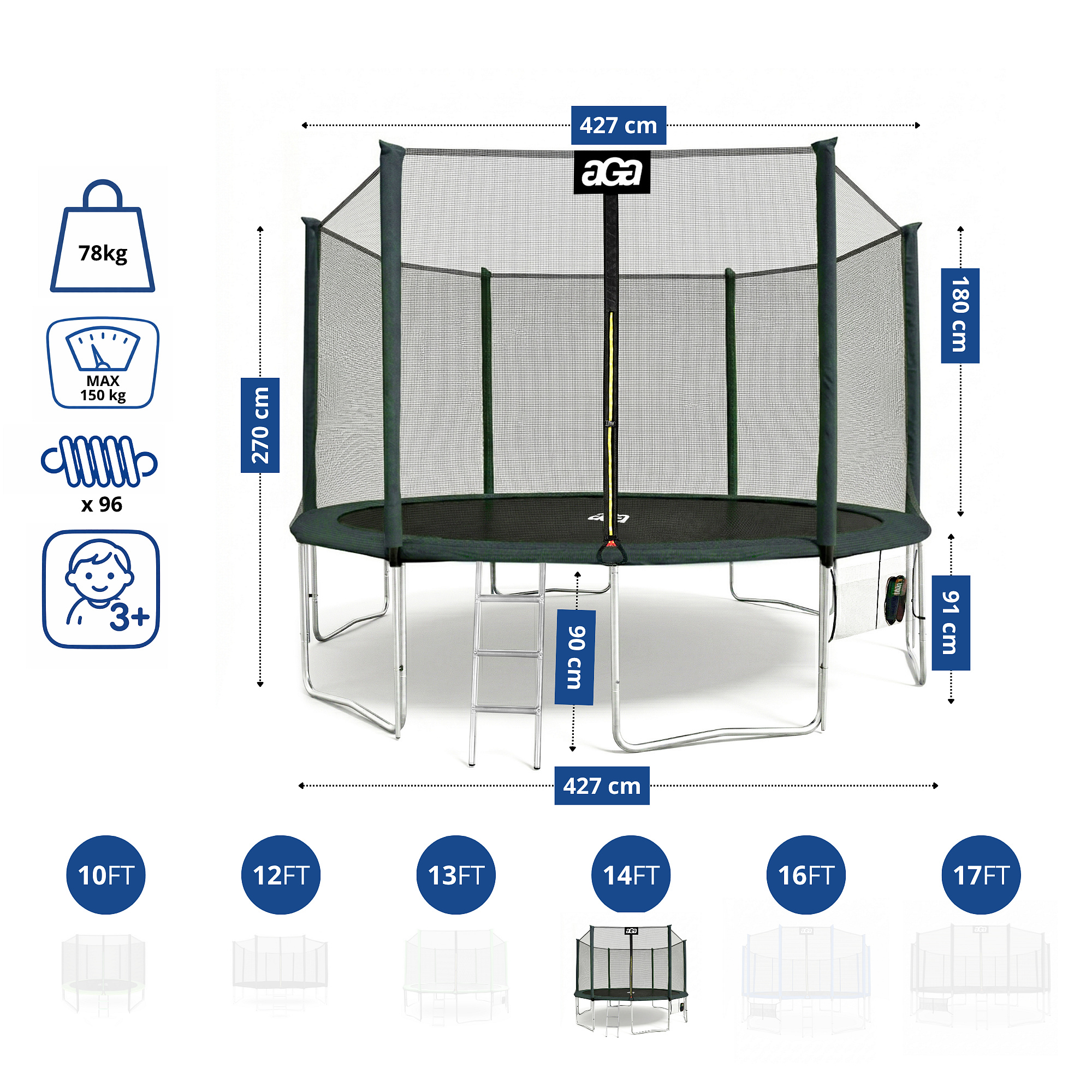 Aga SPORT PRO 430 cm sötétzöld trambulin védőhálóval - specifikáció.