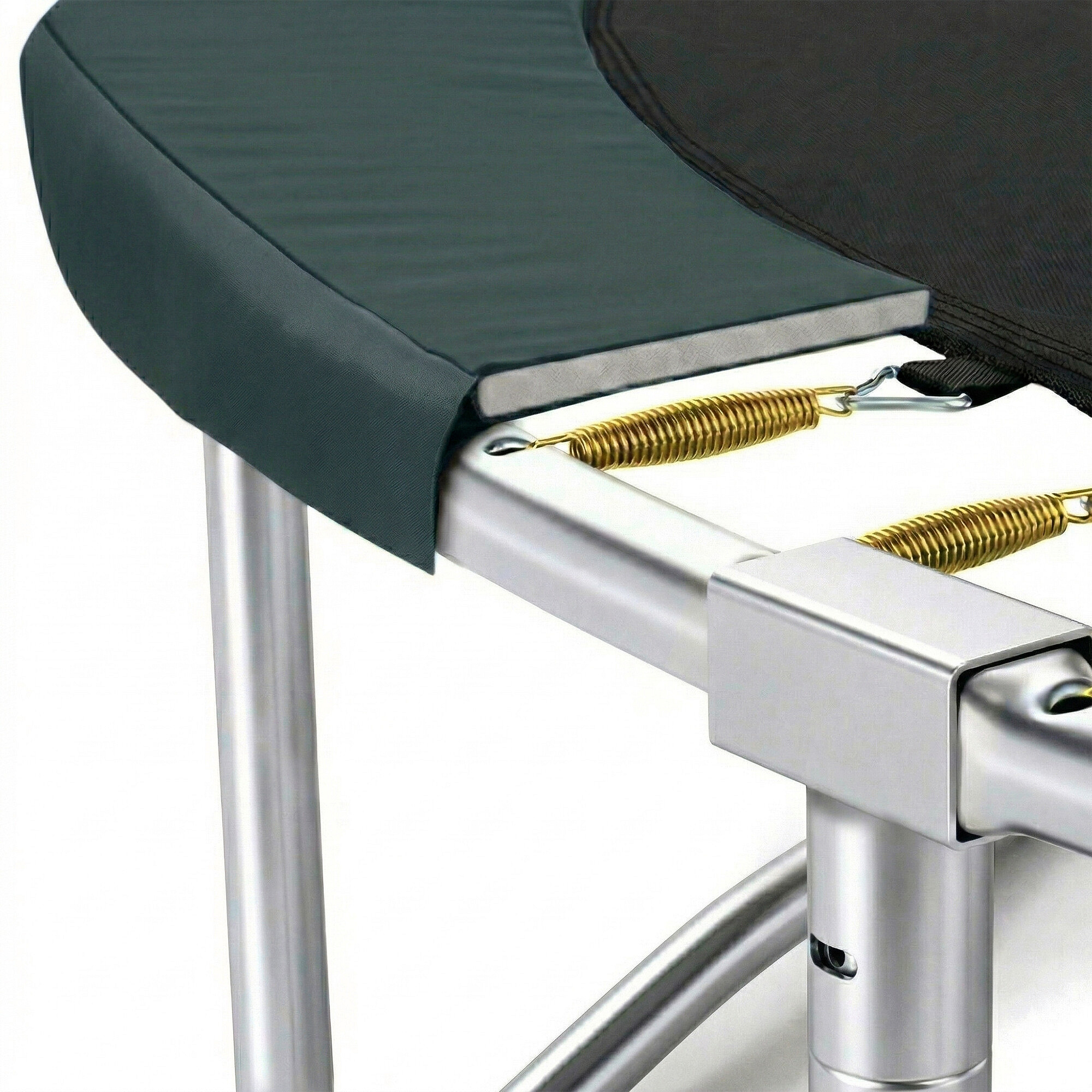 A maximális biztonságot a párnázott kerületi öv (rugóvédő) biztosítja, amely a trambulin teljes kerületén lefedi a rugókat.