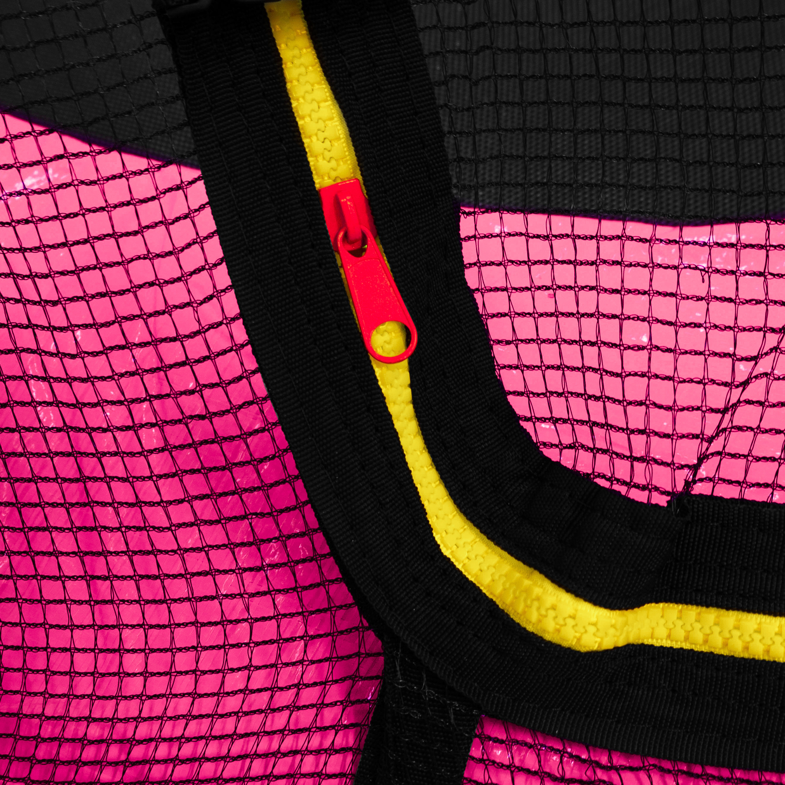 A trambulin ugrófelülete polipropilén szövetből (PP Mesh) készült, vízlepergető felülettel és UV-állósággal.