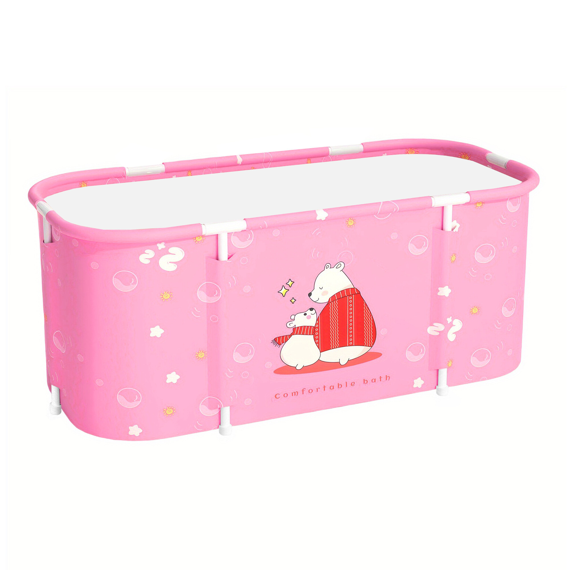 A hordozható összecsukható kád méretei 115 × 60 × 50 cm, így elegendő helyet biztosít a kényelmes fürdéshez még kisebb háztartásokban is.