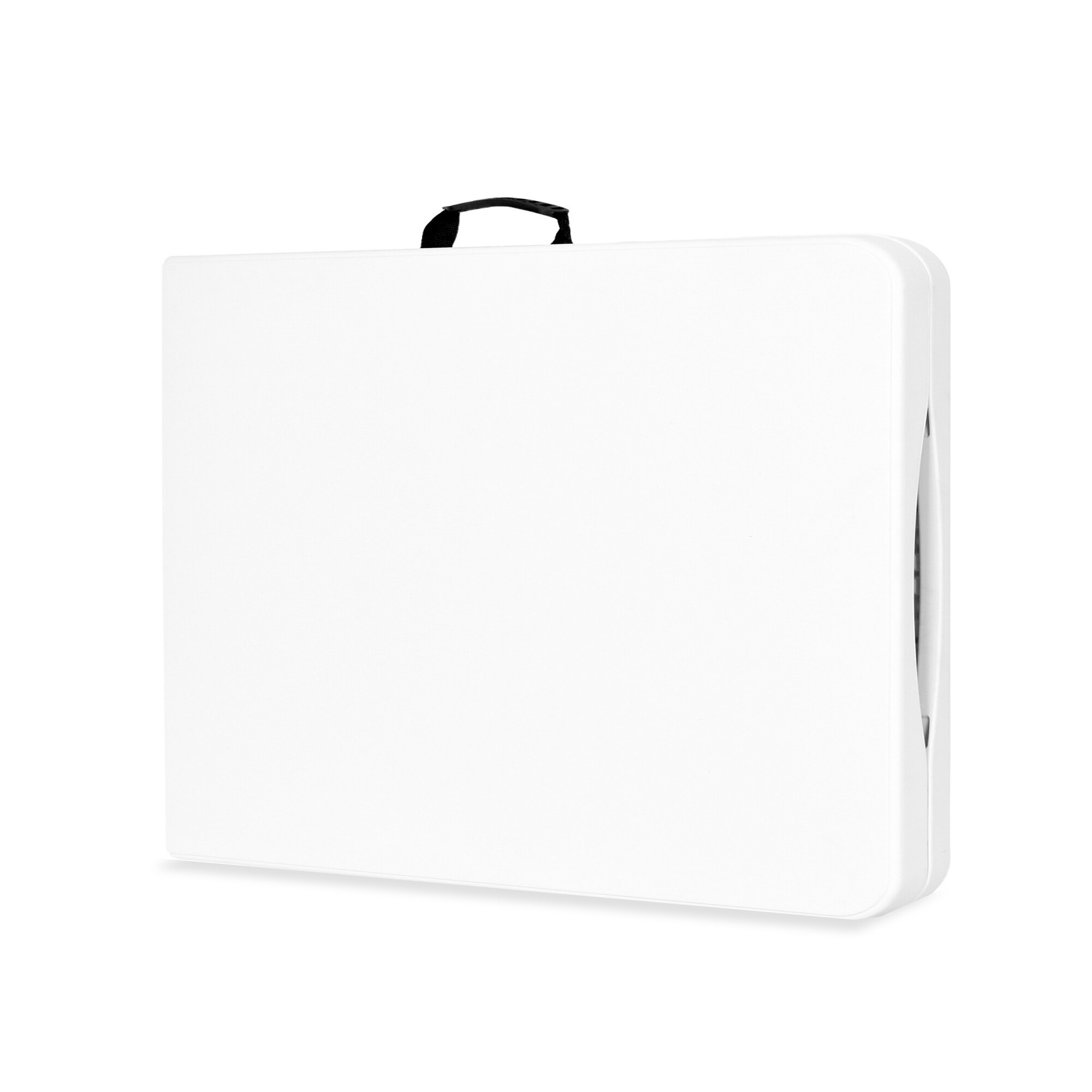 - Összecsukott állapotban az asztal könnyen hordozható lapos tábla formájában, fogantyúval
