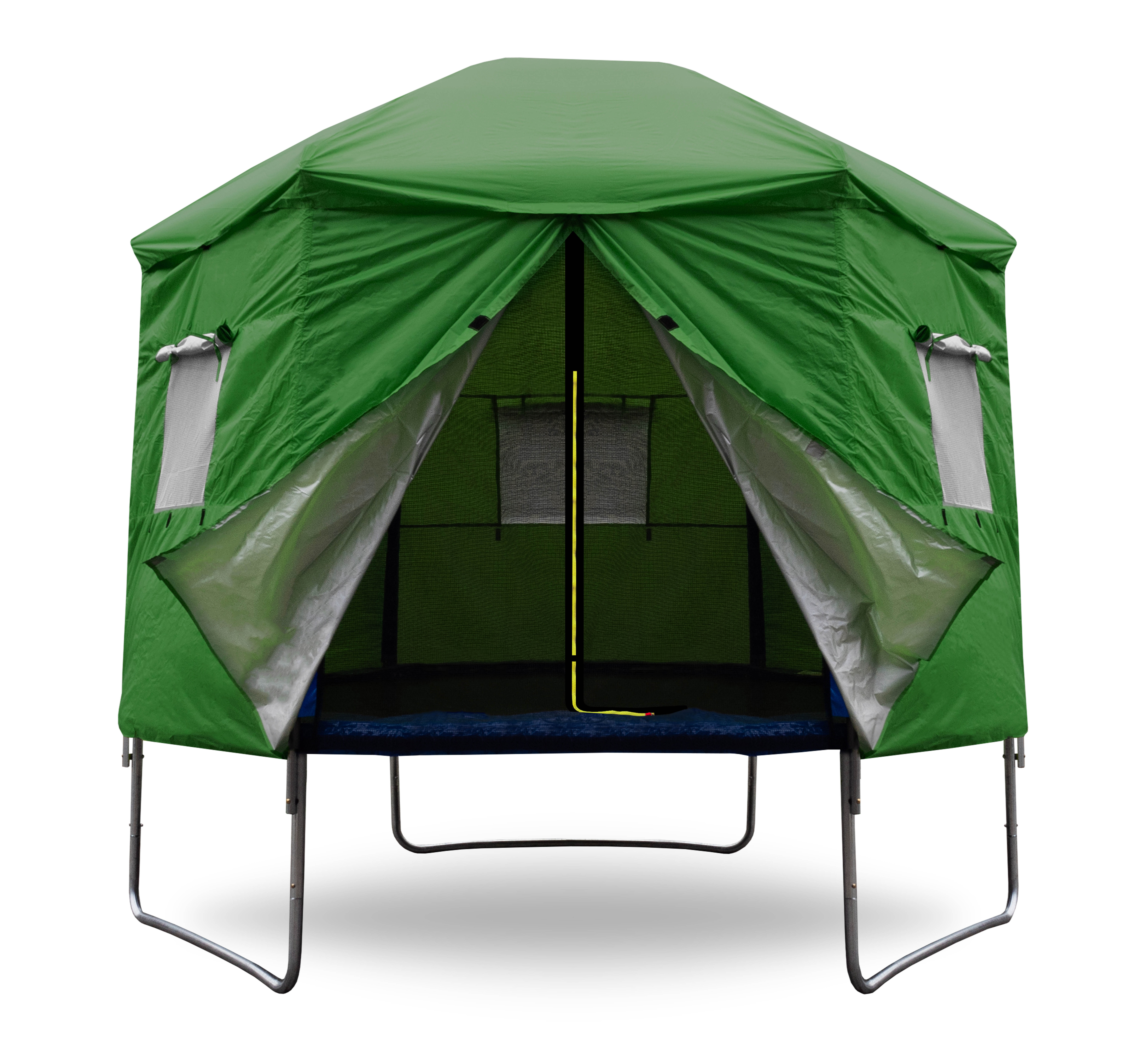 És amikor a trambulin nincs aktívan használva, a sátor segít megvédeni az ugrófelületet a szennyeződéstől és az UV-sugárzástól.