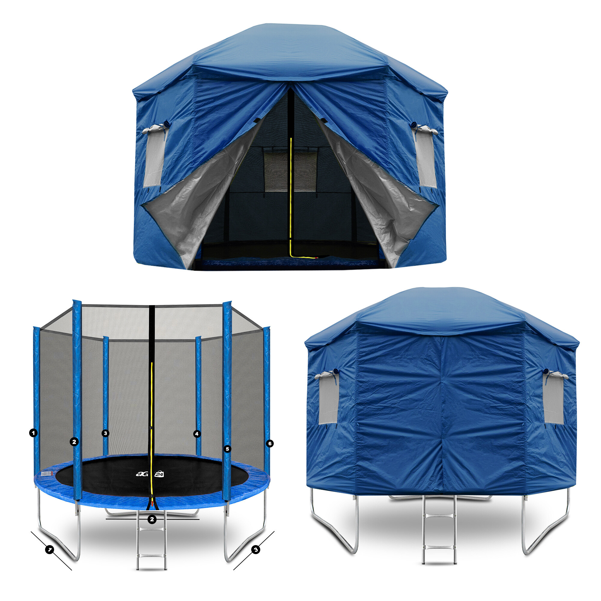 És amikor a trambulin nincs aktívan használva, a sátor segít megvédeni az ugrófelületet a szennyeződéstől és az UV-sugárzástól.