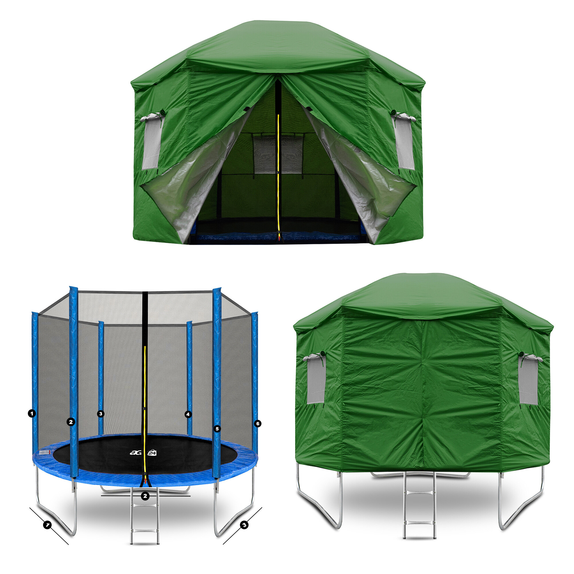 Aga trambulin sátor specifikációi 244, 250 cm (8 ft) Sötétzöld.