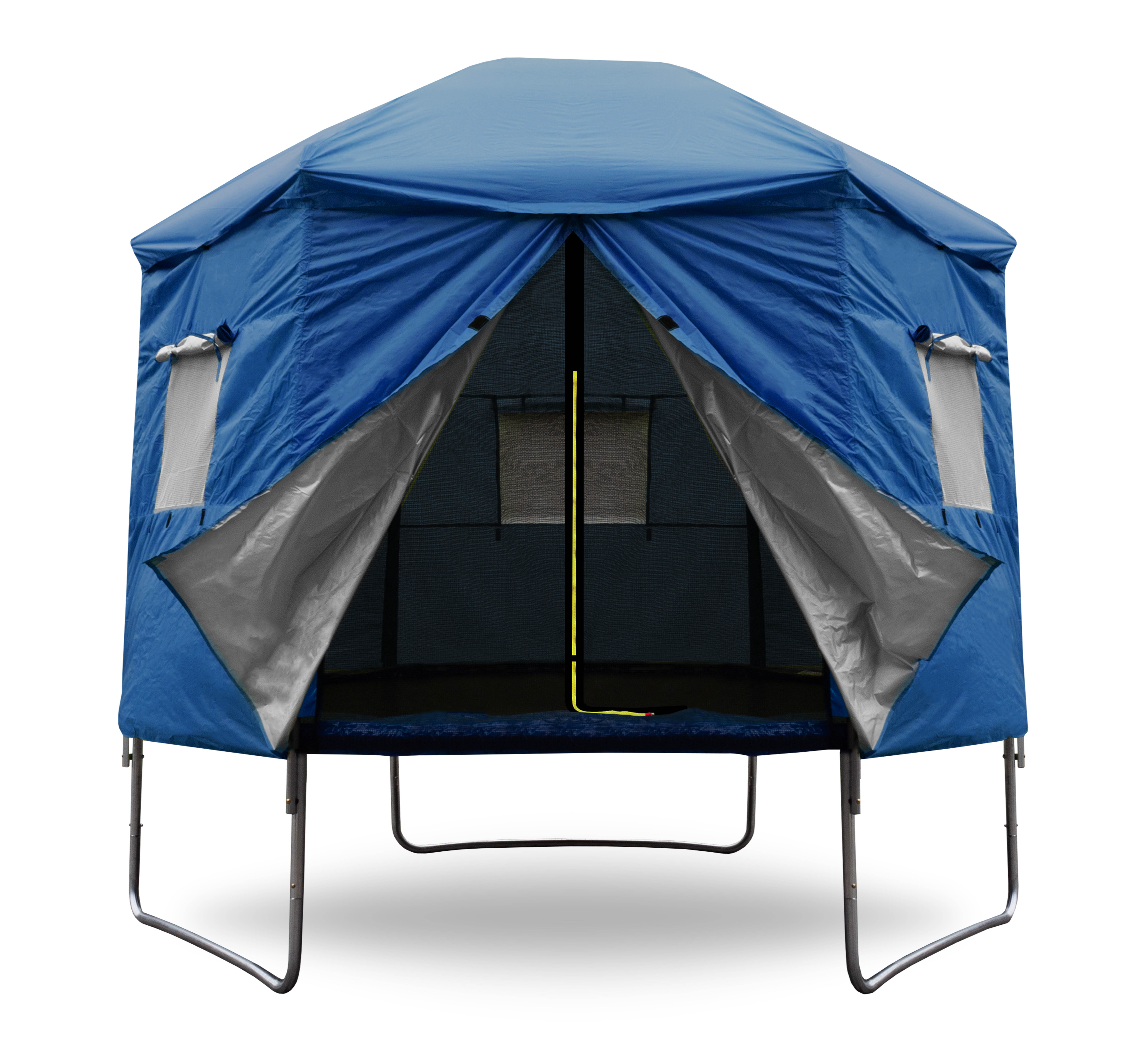 És amikor a trambulin nincs aktívan használva, a sátor segít megvédeni az ugrófelületet a szennyeződéstől és az UV-sugárzástól.