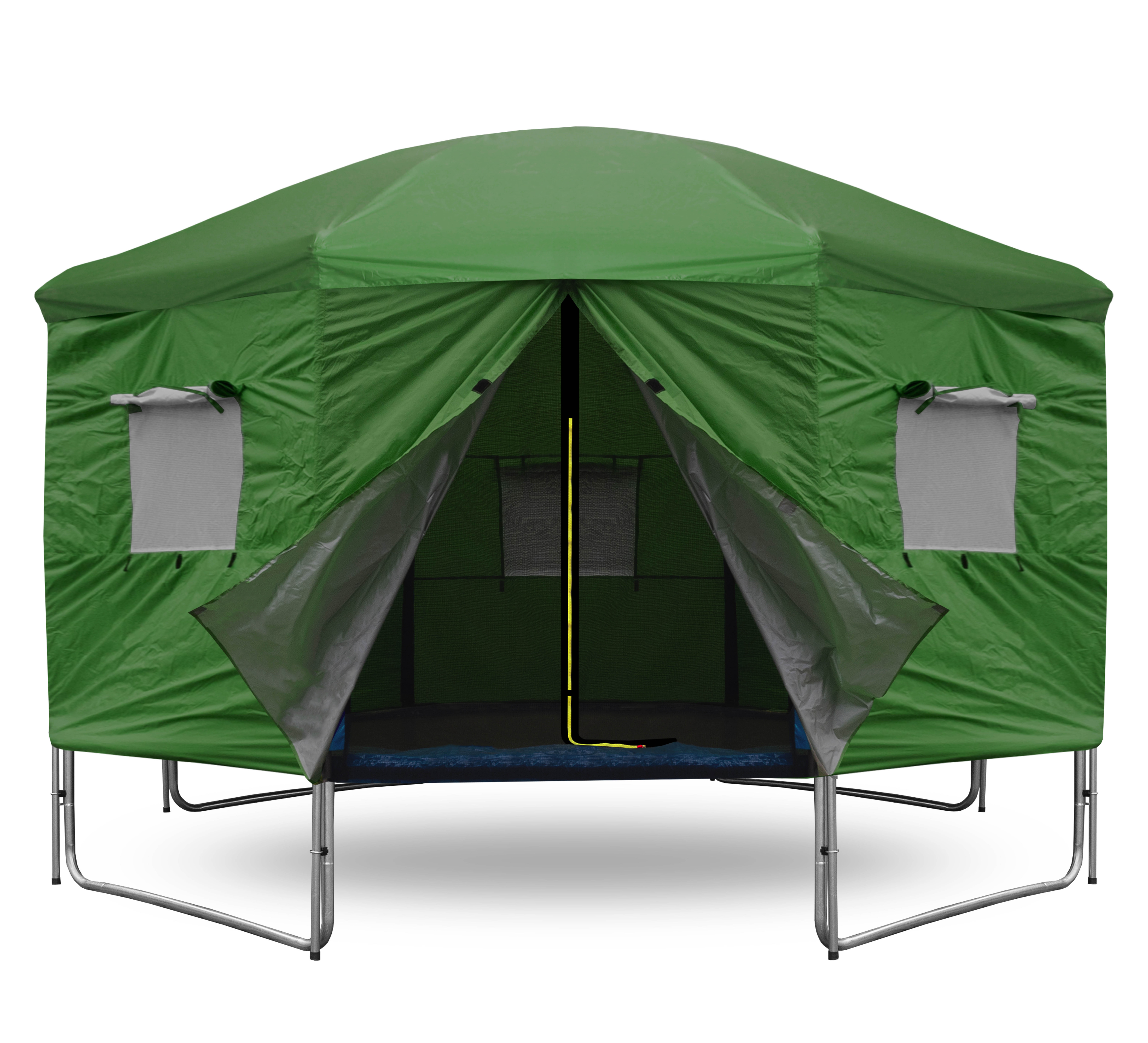 És amikor a trambulin nincs aktívan használva, a sátor segít megvédeni az ugrófelületet a szennyeződéstől és az UV-sugárzástól.