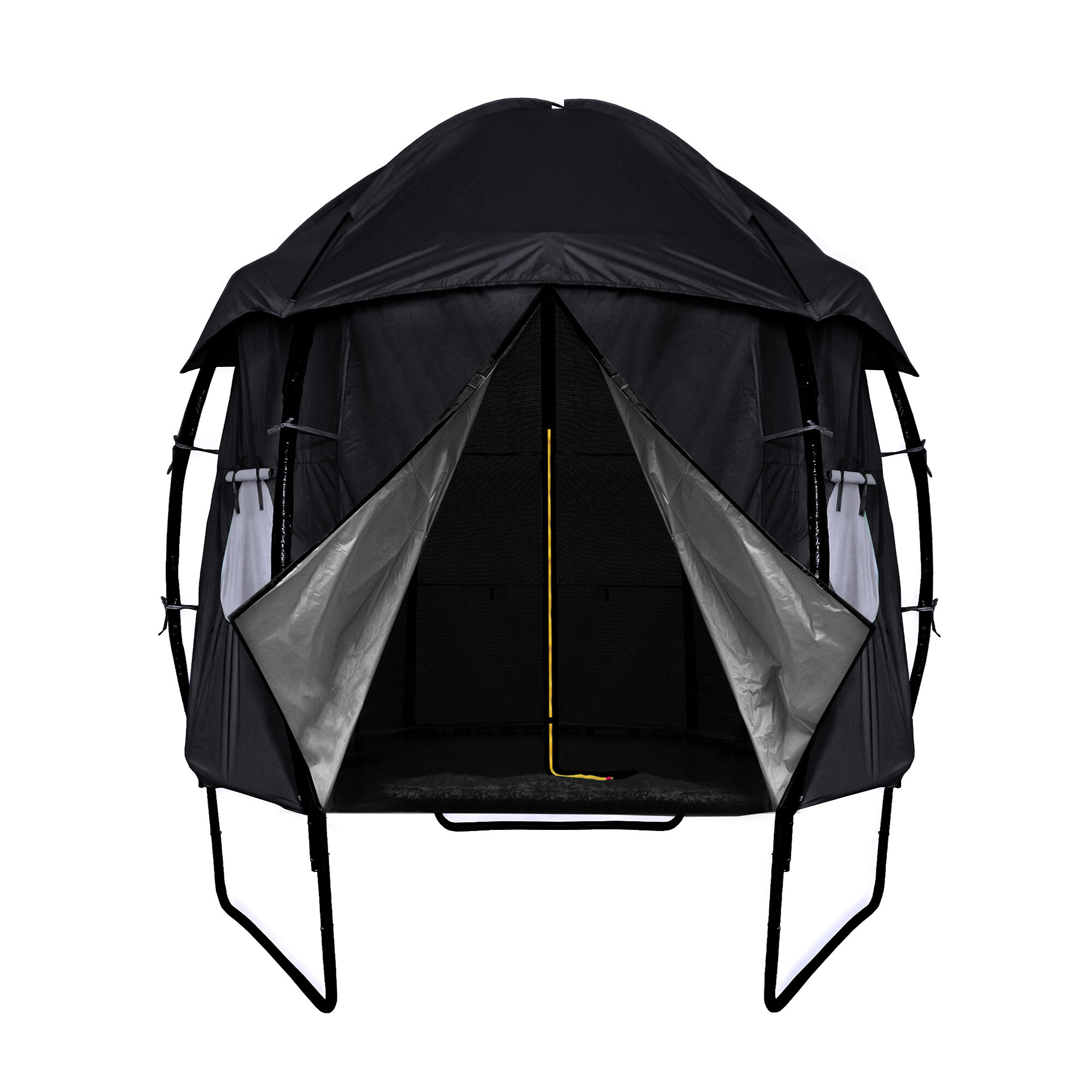 És amikor a trambulin nincs aktívan használva, a sátor segít megvédeni az ugrófelületet a szennyeződéstől és az UV-sugárzástól.