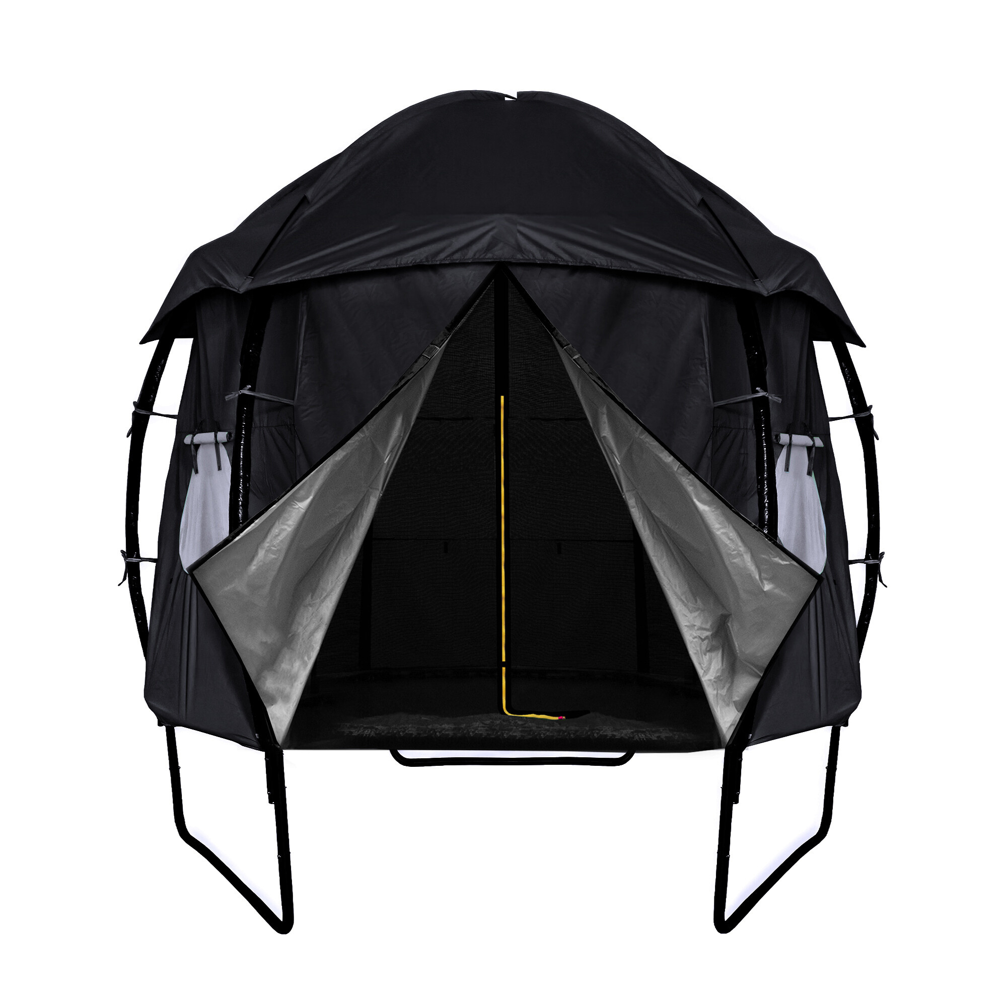 És amikor a trambulin nincs aktívan használva, a sátor segít megvédeni az ugrófelületet a szennyeződéstől és az UV-sugárzástól.