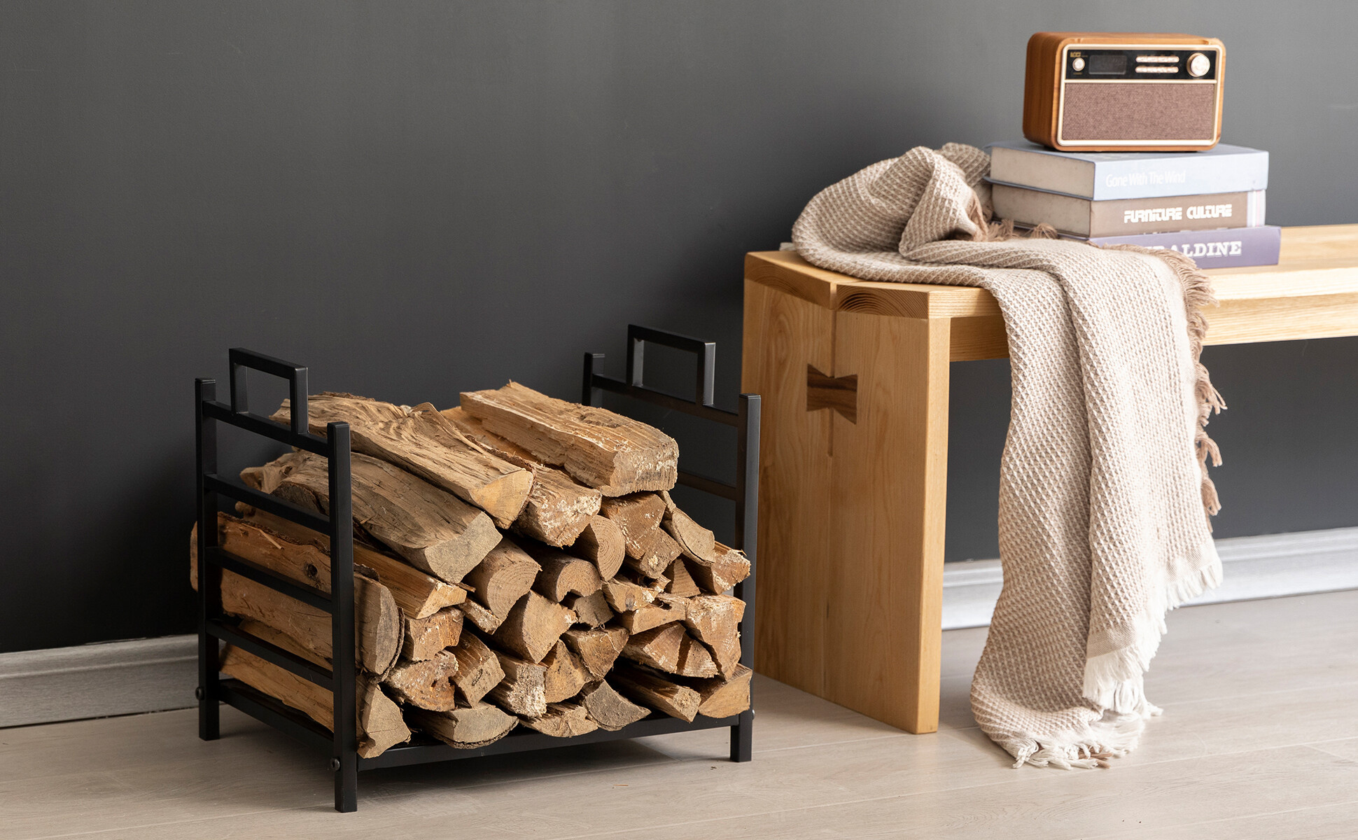 Az tárolás mellett érdekes kialakításával esztétikai funkciót is betölt, és rendet tart a fa kezelése során.