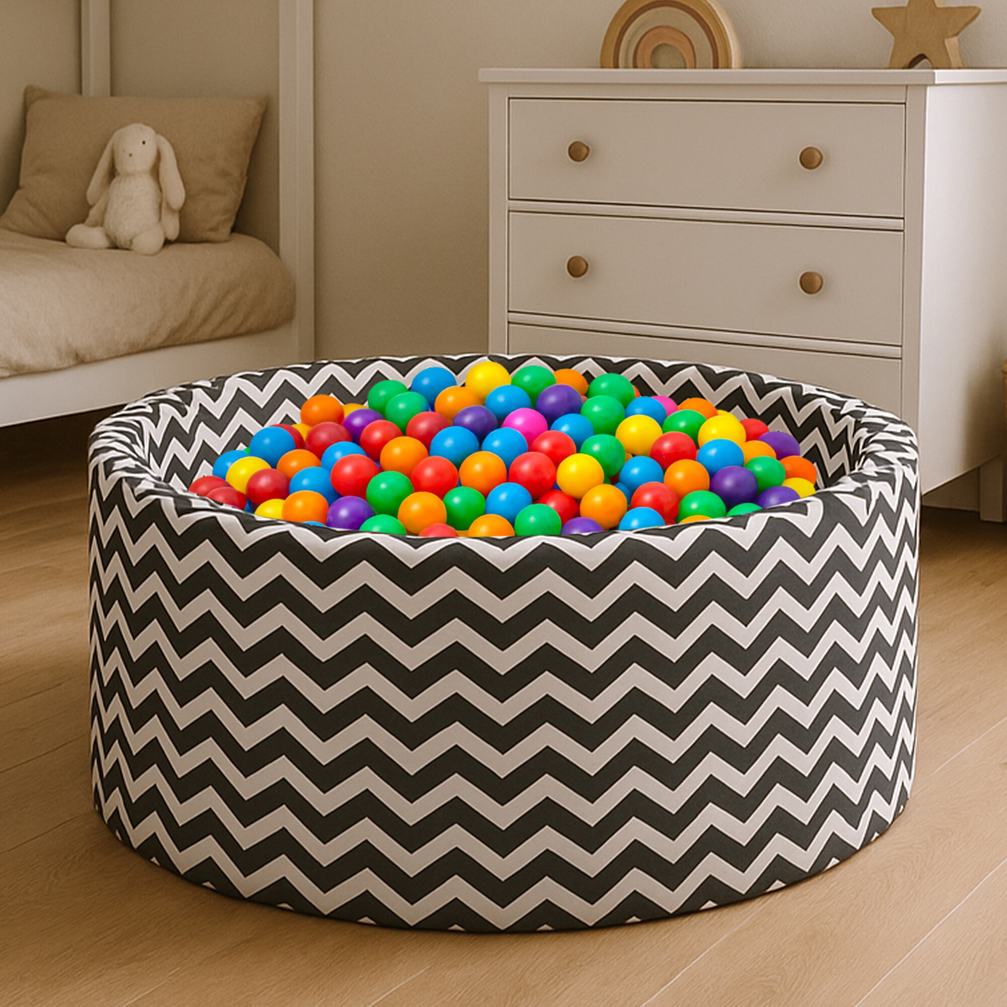 A medence készletében 200 (Ø 5,5 cm) színes labda található. Minden felhasznált anyag a legmagasabb minőségű. Az anyagok tanúsítvánnyal rendelkeznek.