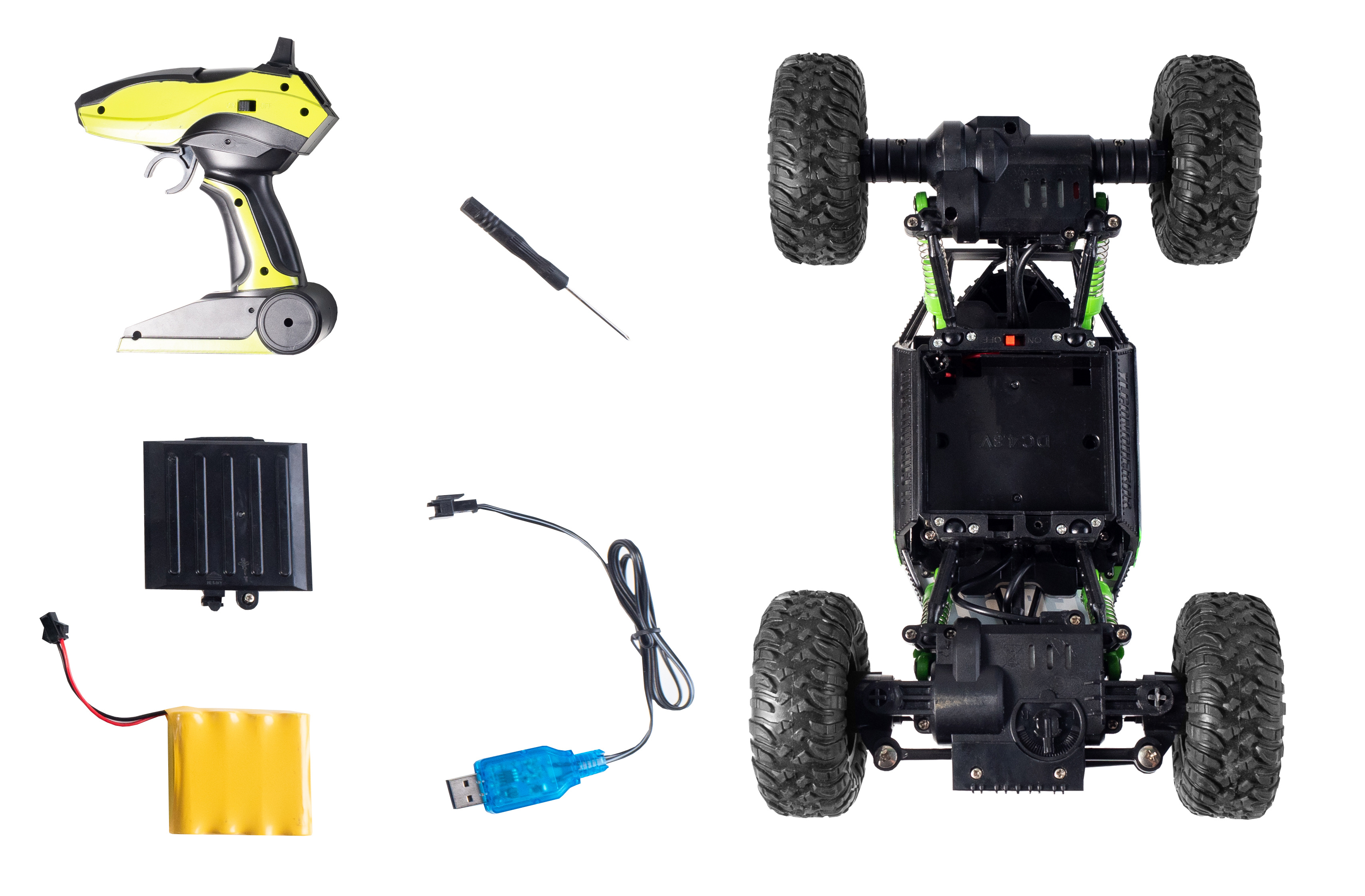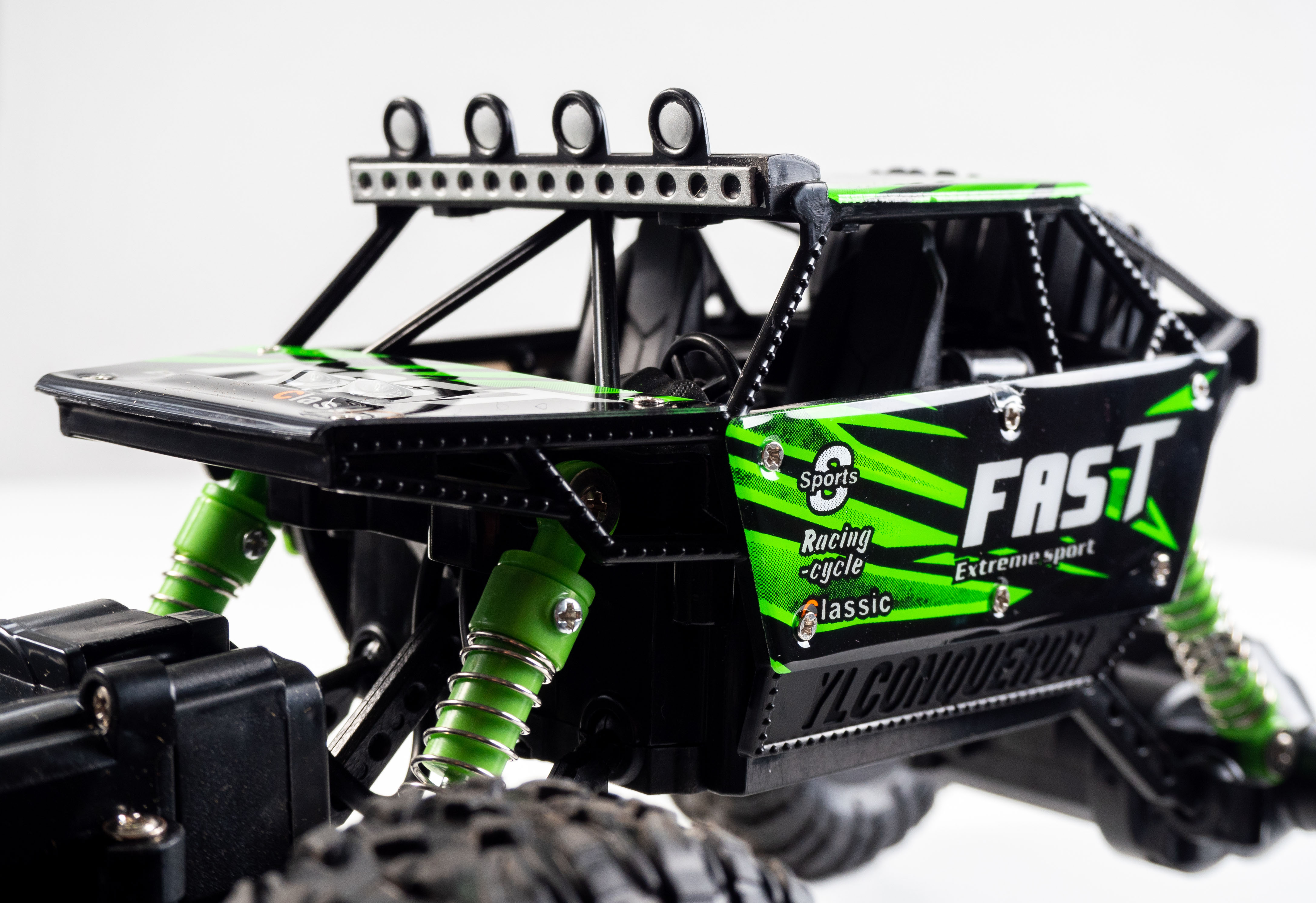 A terepjáró kiváló menettulajdonságokkal rendelkezik kavicson, homokon, aszfalton és más felületeken is. A kiváló minőségű alkatrészekből készült robusztus konstrukció kiváló ellenállást biztosít a modell számára a sérülésekkel szemben.Rugalmasan rögzített tengelyek, 4x4-es hajtás és nagy emelésű lengéscsillapítók teszik tökéletes társsá az extrém terepi kihívásokhoz.