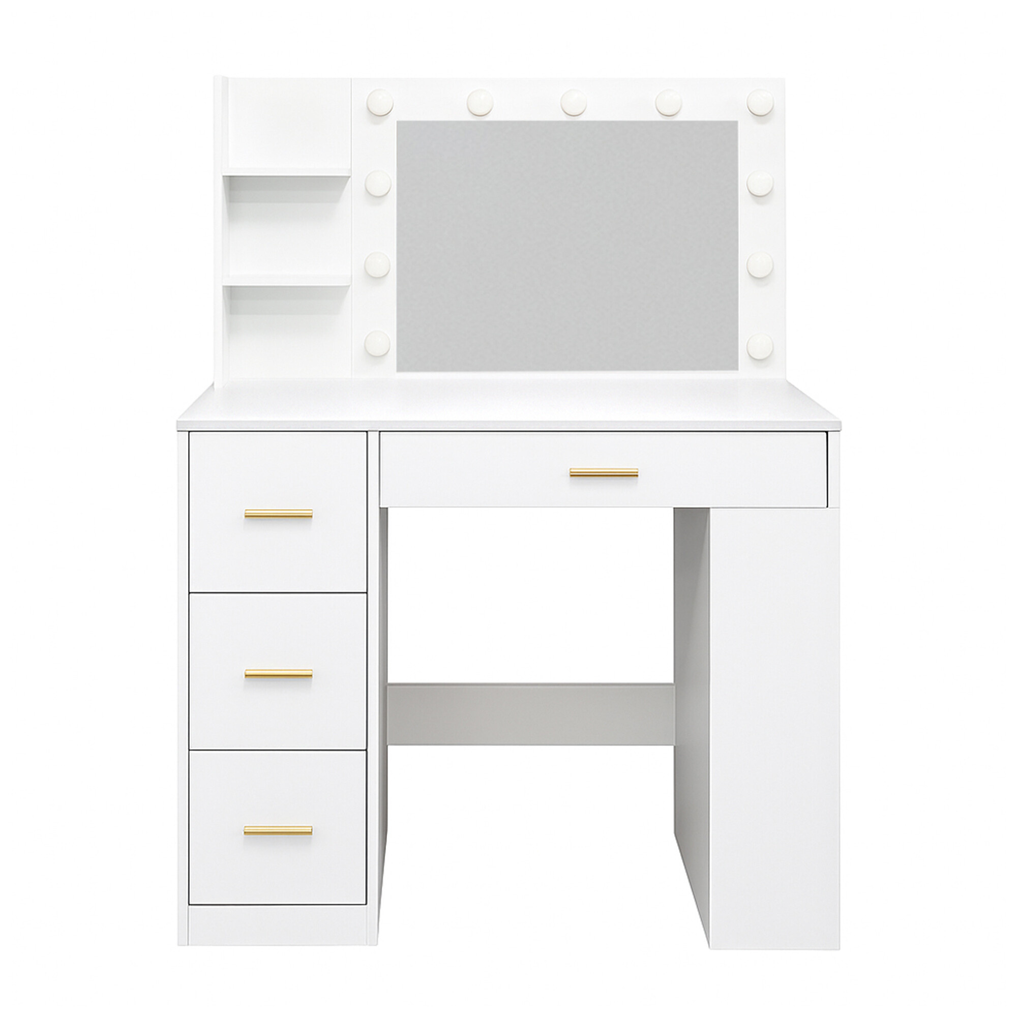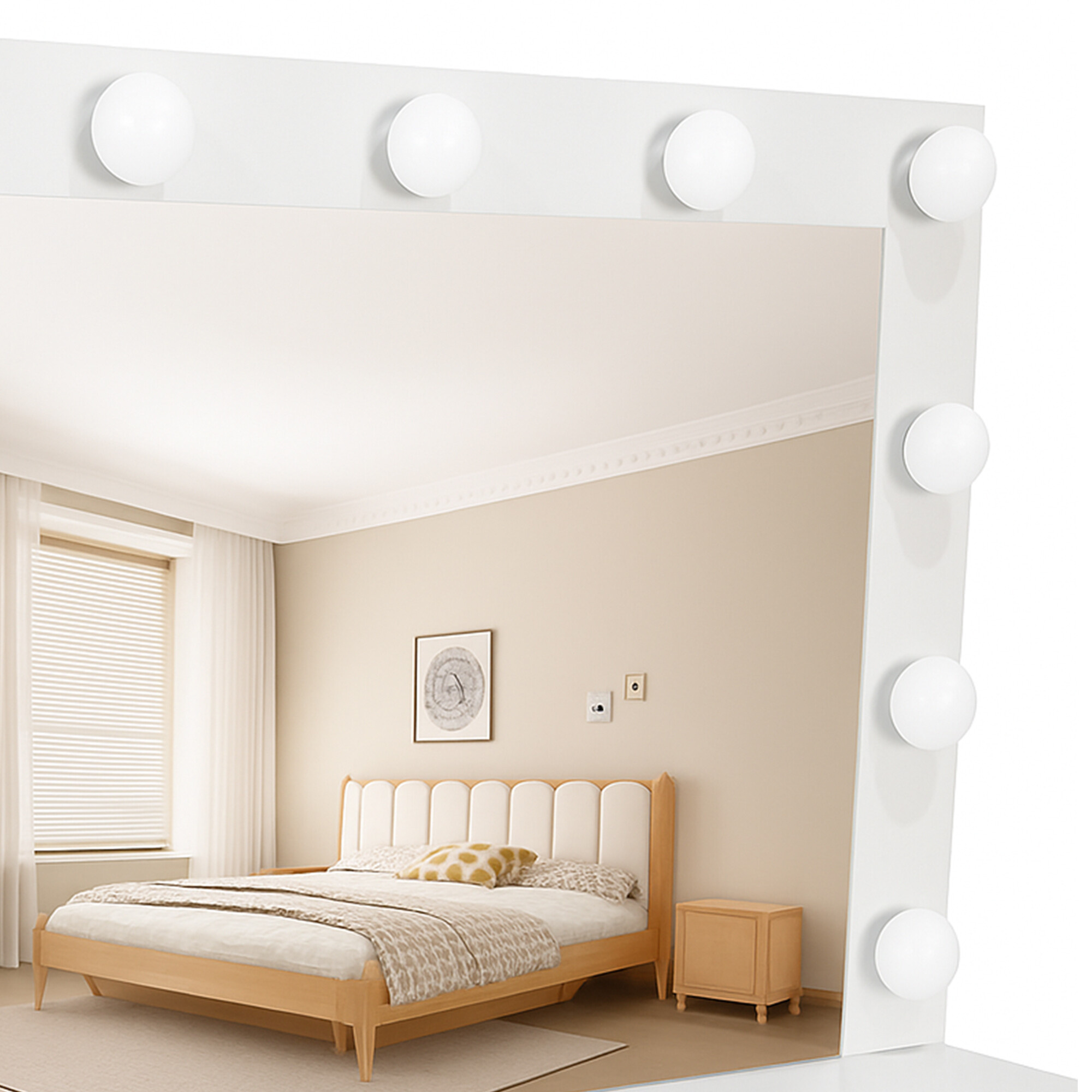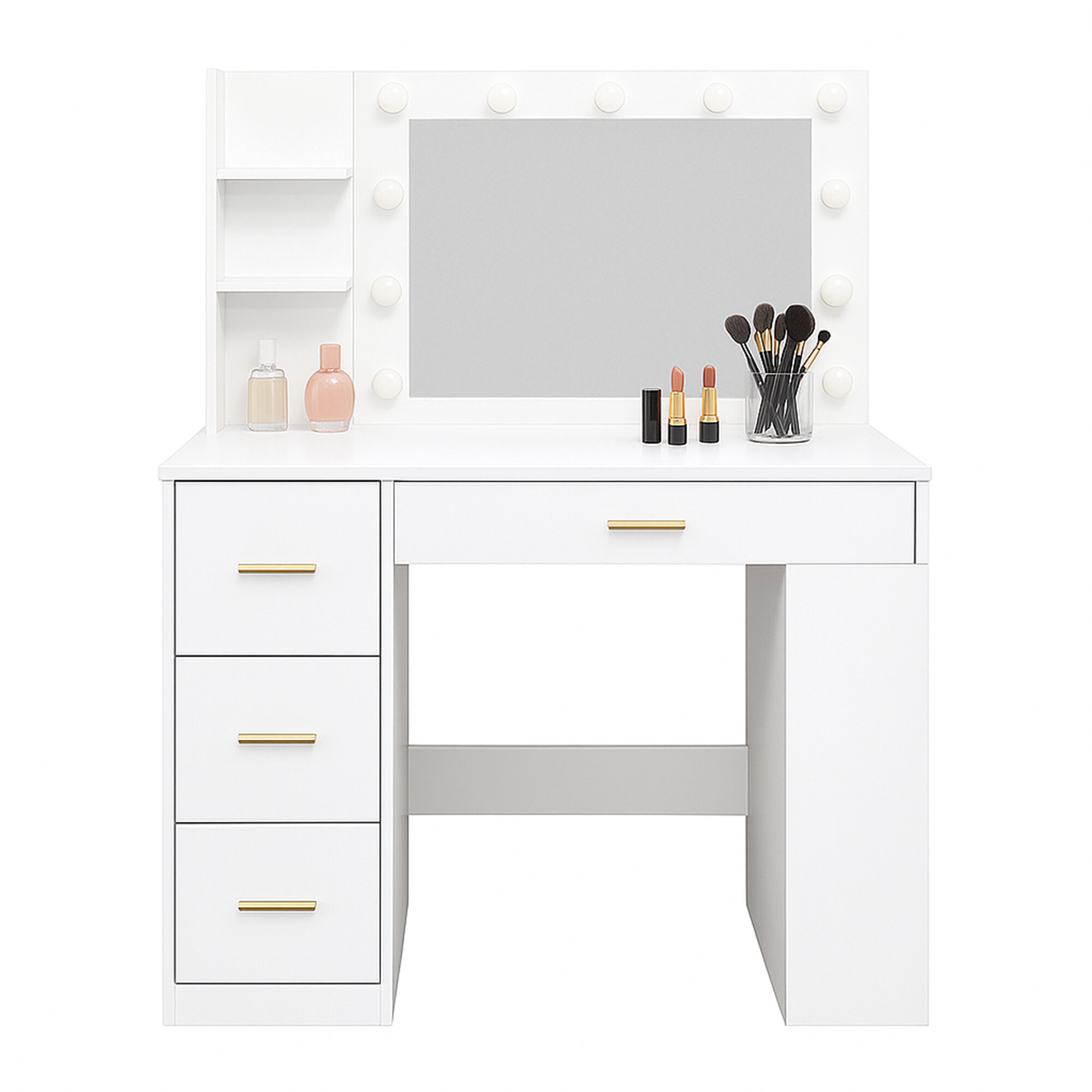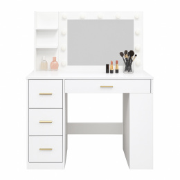 Az asztal domináns eleme egy nagy tükör 11 LED izzóval, amelyeknél egyszerűen változtathatja a fény hőmérsékletét hidegtől a semlegesig és melegig. Ennek köszönhetően mindig ideális megvilágítást biztosíthat a sminkeléshez, hajformázáshoz vagy az esti bőrápoláshoz.