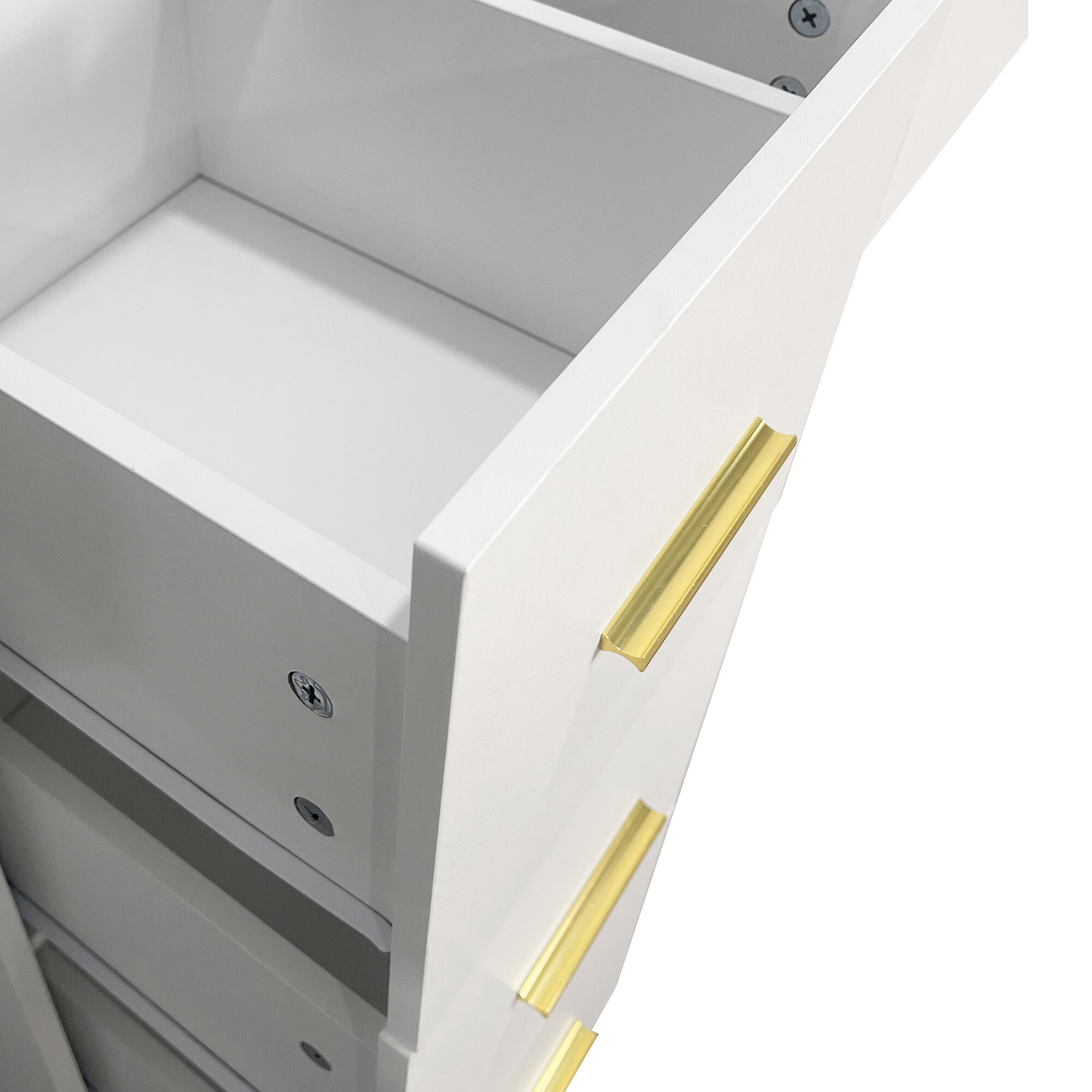 A tükör mellett két praktikus nyitott polc található, amelyeken elhelyezheti kedvenc kozmetikai termékeit, parfümjeit vagy dekorációit. Négy tágas fiók elegendő tárolóhelyet kínál a smink, ékszerek és egyéb kiegészítők számára, így mindig áttekinthetően kéznél lesznek.