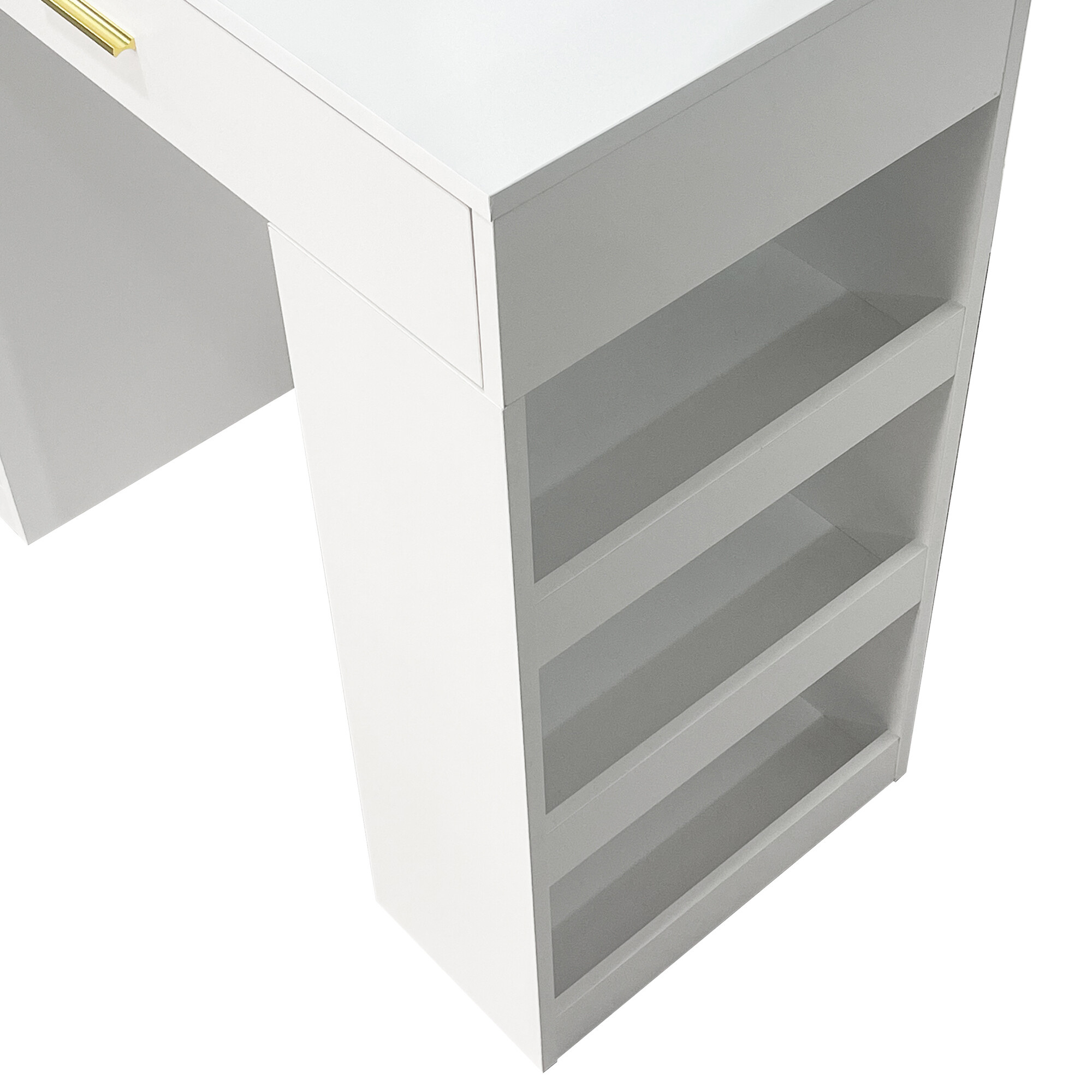 Az asztal méretei 101,6 × 40 × 135,8 cm biztosítják, hogy tökéletesen illeszkedjen kisebb hálószobákba vagy lakásokba is. A fehér matt felület elegáns és időtlen hatást kelt, így az asztal könnyen illeszthető bármilyen belső térhez – a modern stílustól a klasszikusig.
