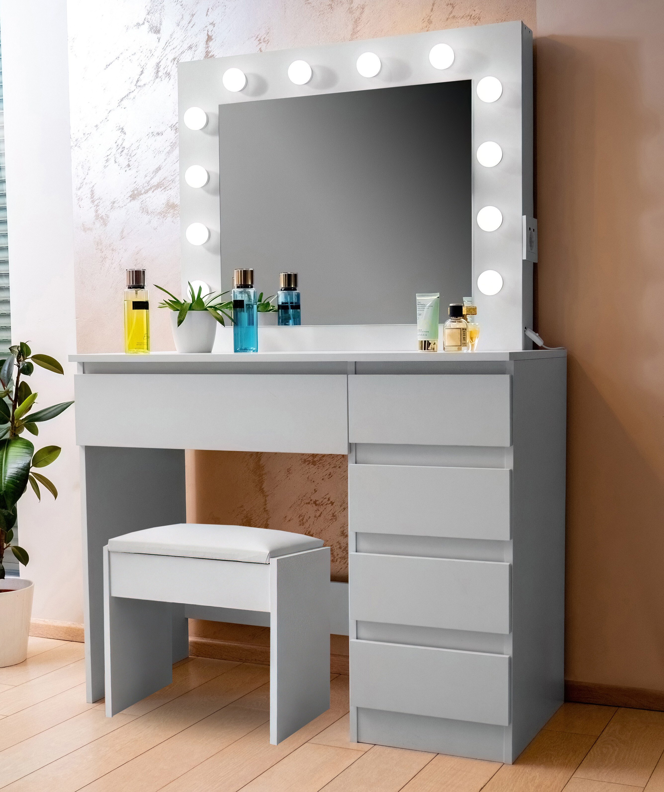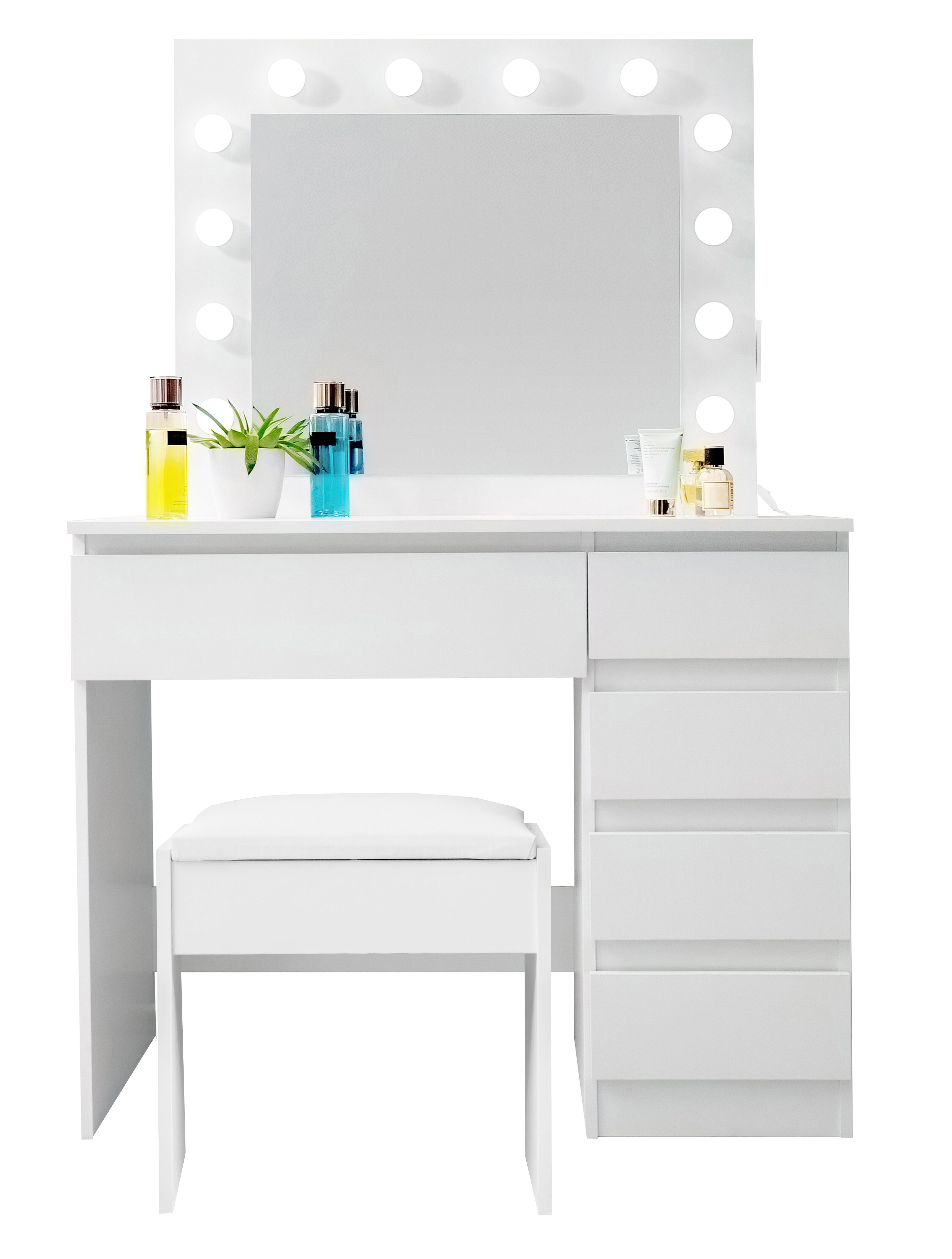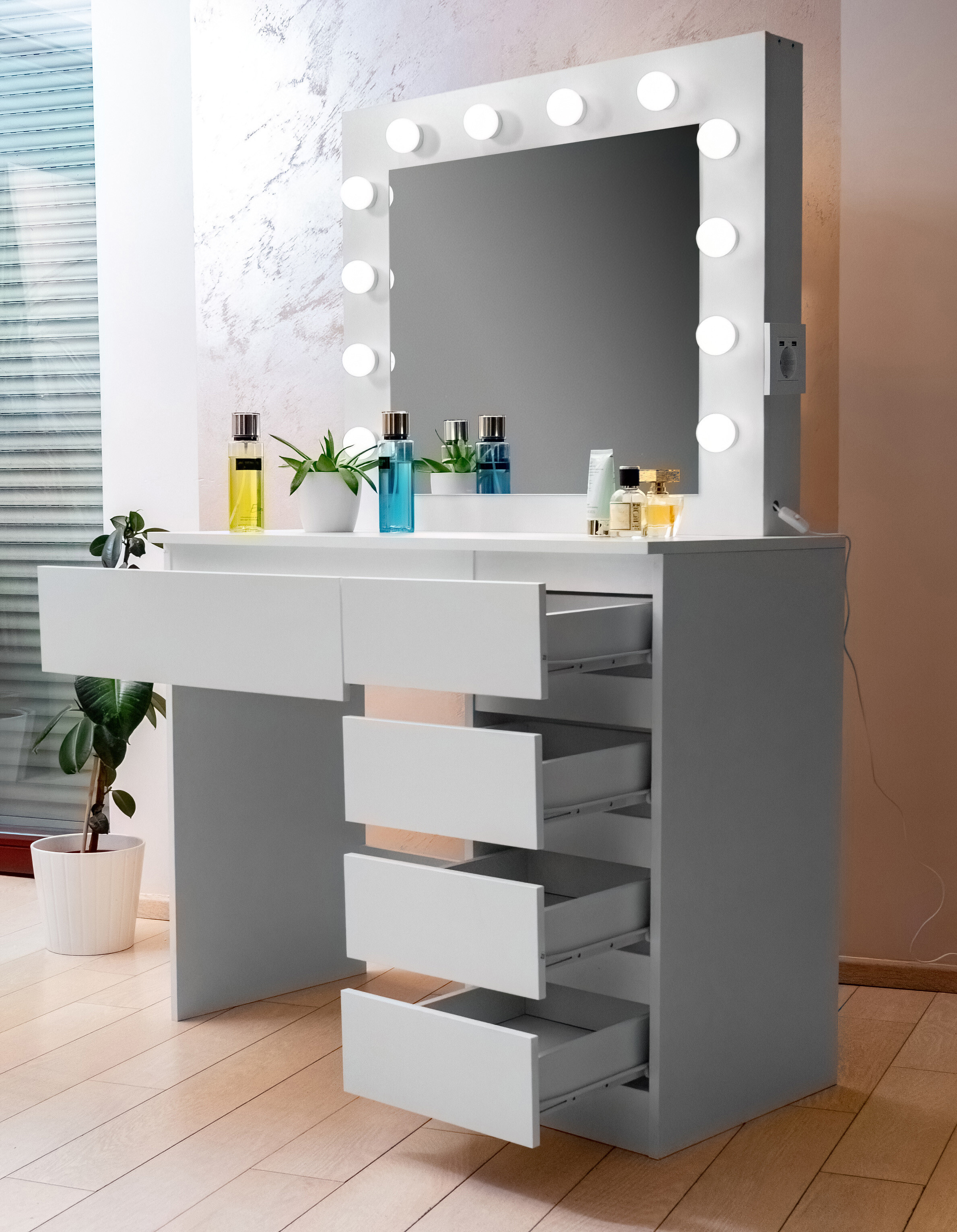 Biztosan értékelni fogja az 5 tágas fiókot is, amelyekben kényelmesen elhelyezheti az összes kozmetikai eszközét, ékszerét és egyéb kiegészítőit.