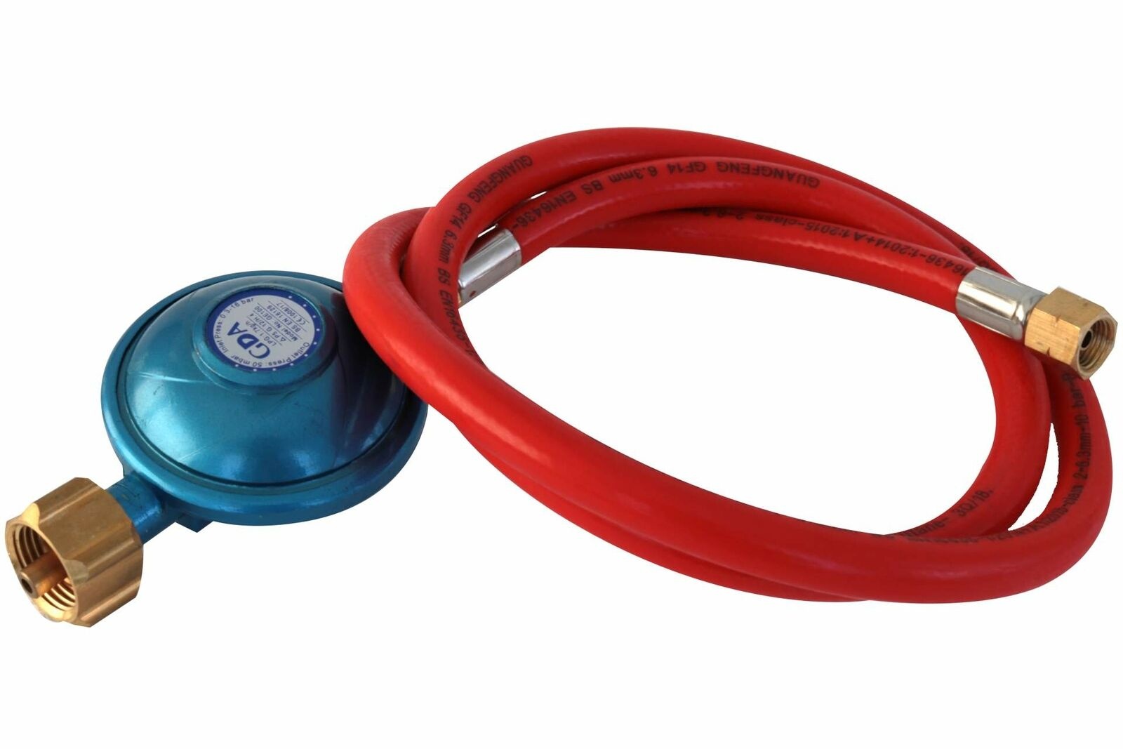 - Rugalmas gázbevezetés gáznyomás-szabályozóval a készülék 1,20 m hosszú gázpalackhoz való csatlakoztatásához