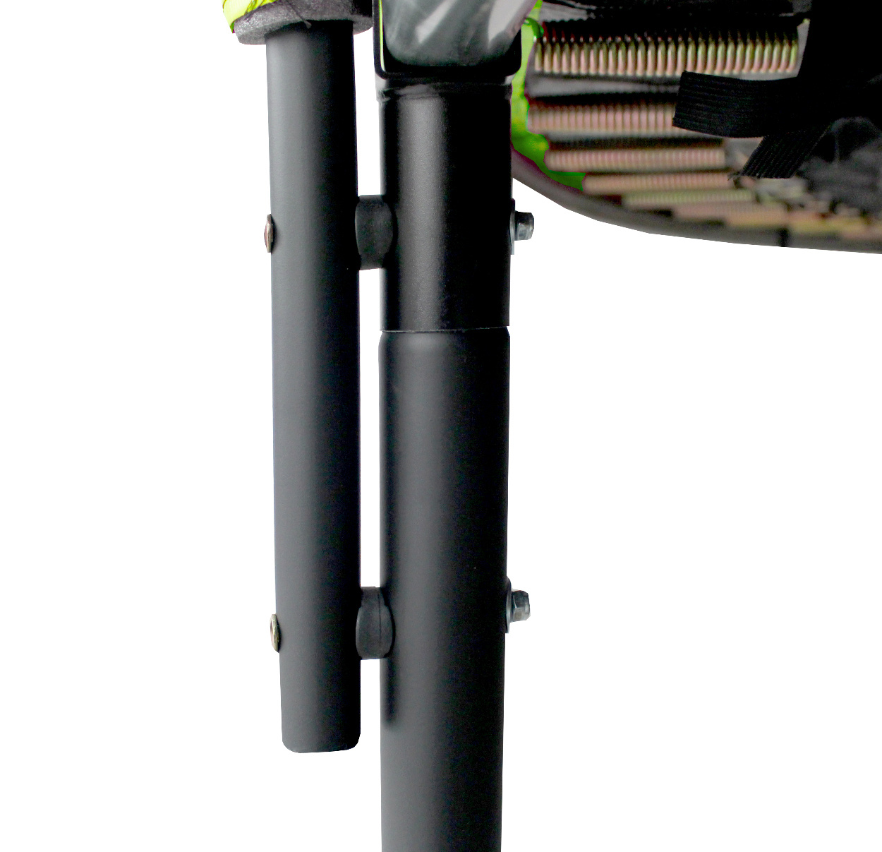 A kör alakú Hi-Ten megerősített trambulin szerkezet kiváló minőségű, horganyzott acélból készült, amely kiváló korrózióállósággal rendelkezik. Az U-lábak felülete porfestékkel van bevonva.