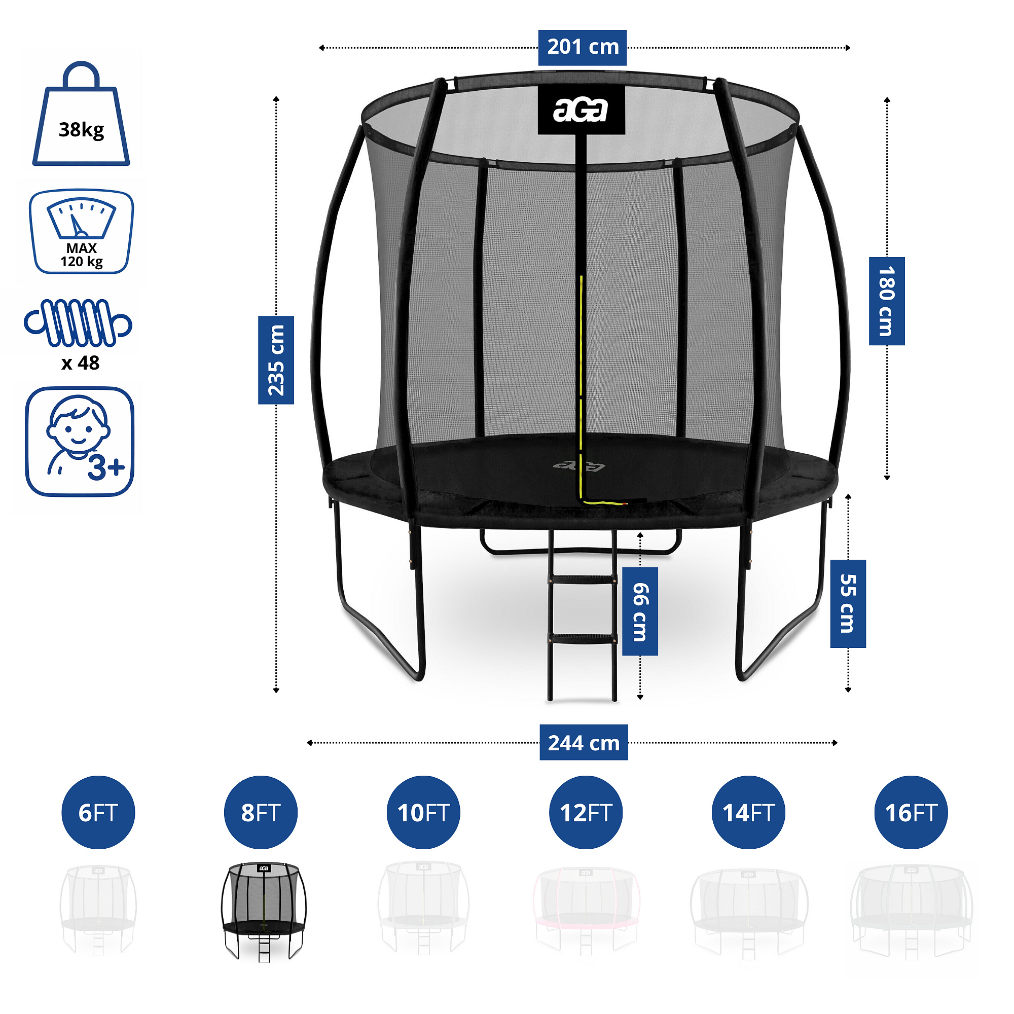 Az Aga trambulin belső védőhálóval kifejezetten a gyermekek és felnőttek biztonságos szórakozására lett tervezve és gyártva.